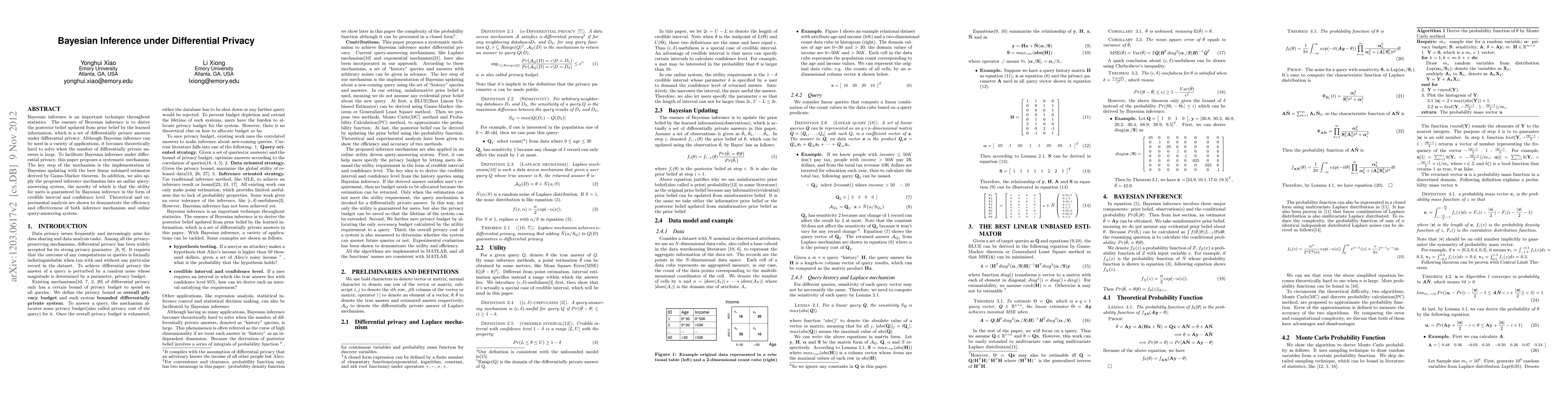 This paper proposes a systematic mechanism for Bayesian inference under differential privacy, utilizing the Gauss-Markov theorem for optimal linear unbiased estimation. It also applies this mechanism to an online query-answering system, ensuring user utility through credible intervals and confidence levels, with both theoretical and experimental validation of its efficiency and effectiveness.