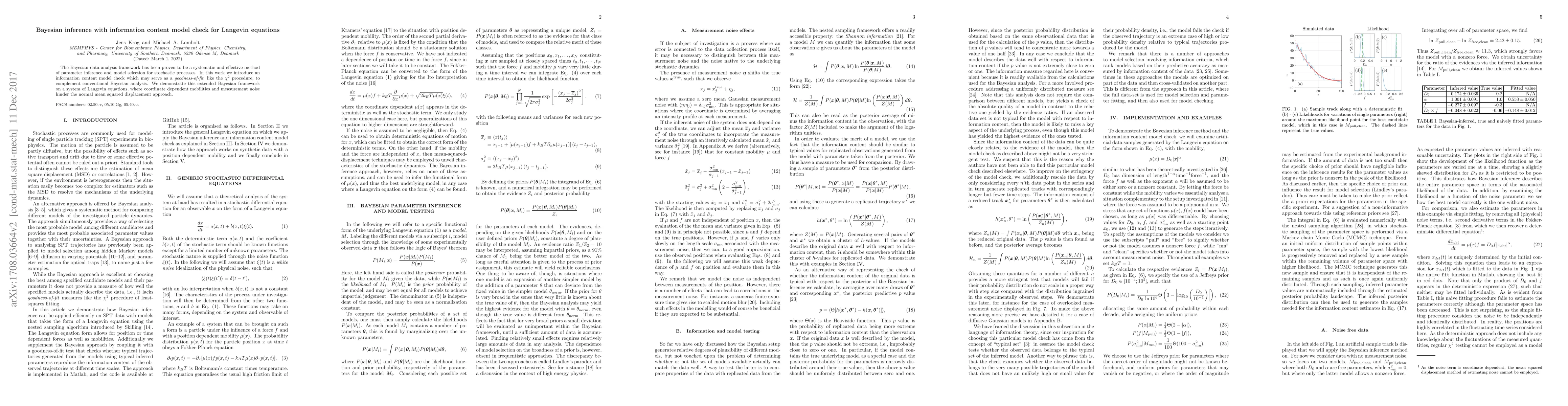 The research introduces an information content model check, complementing conventional Bayesian analysis for parameter inference and model selection in stochastic processes, specifically demonstrated on a system of Langevin equations.