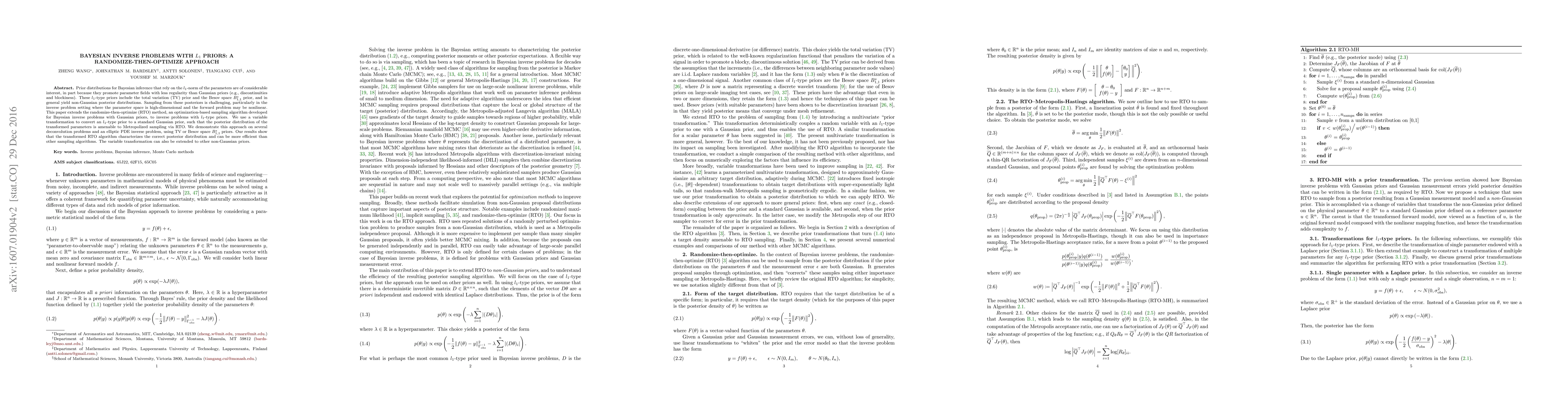 This paper extends the randomize-then-optimize (RTO) method to Bayesian inverse problems using $l_1$-type priors, which promote less regular parameter fields. It employs a variable transformation to convert $l_1$-type priors to Gaussian priors, enabling Metropolized sampling via RTO, and demonstrates its effectiveness on deconvolution and PDE inverse problems.
