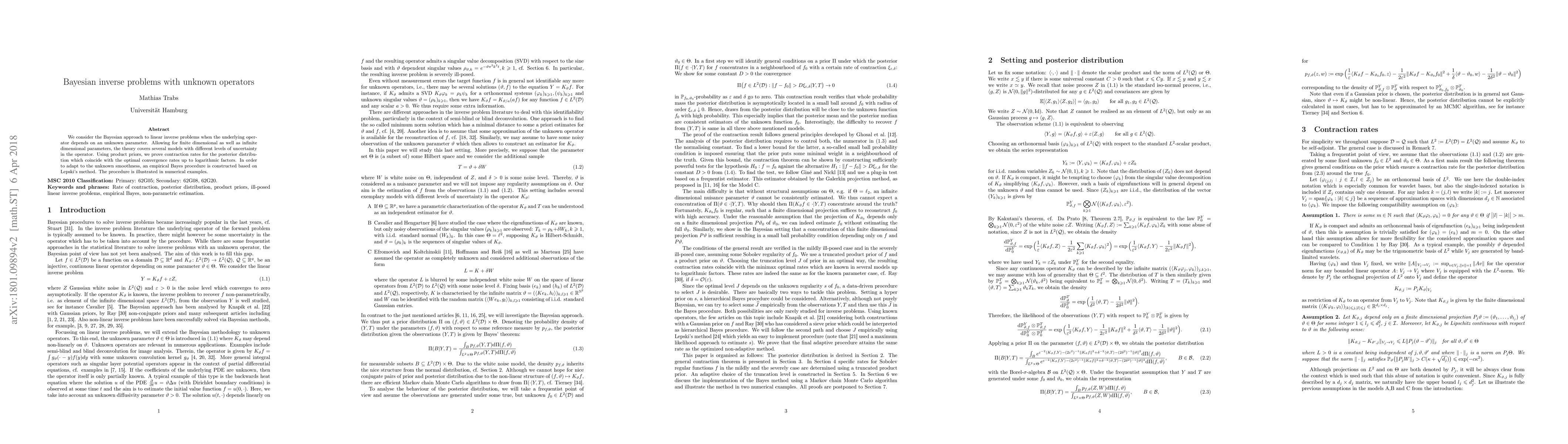 We consider the Bayesian approach to linear inverse problems when the underlying operator depends on an unknown parameter. Allowing for finite dimensional as well as infinite dimensional parameters, the theory covers several models with different levels of uncertainty in the operator. Using product priors, we prove contraction rates for the posterior distribution which coincide with the optimal convergence rates up to logarithmic factors. In order to adapt to the unknown smoothness, an empirical Bayes procedure is constructed based on Lepski's method. The procedure is illustrated in numerical examples.