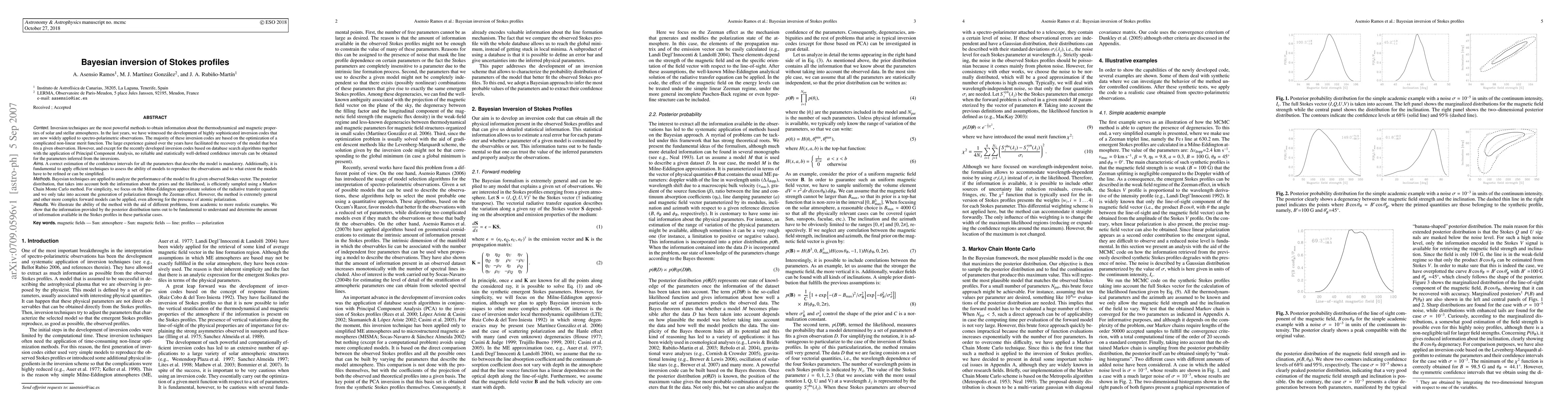 [abridged] Inversion techniques are the most powerful methods to obtain information about the thermodynamical and magnetic properties of solar and stellar atmospheres. In the last years, we have witnessed the development of highly sophisticated inversion codes that are now widely applied to spectro-polarimetric observations. The majority of these inversion codes are based on the optimization of a complicated non-linear merit function. However, no reliable and statistically well-defined confidence intervals can be obtained for the parameters inferred from the inversions. A correct estimation of the confidence intervals for all the parameters that describe the model is mandatory. Additionally, it is fundamental to apply efficient techniques to assess the ability of models to reproduce the observations and to what extent the models have to be refined or can be simplified. Bayesian techniques are applied to analyze the performance of the model to fit a given observed Stokes vector. The posterior distribution, is efficiently sampled using a Markov Chain Monte Carlo method. For simplicity, we focus on the Milne-Eddington approximate solution of the radiative transfer equation and we only take into account the generation of polarization through the Zeeman effect. However, the method is extremely general and other more complex forward models can be applied. We illustrate the ability of the method with the aid of academic and realistic examples. We show that the information provided by the posterior distribution turns out to be fundamental to understand and determine the amount of information available in the Stokes profiles in these particular cases.