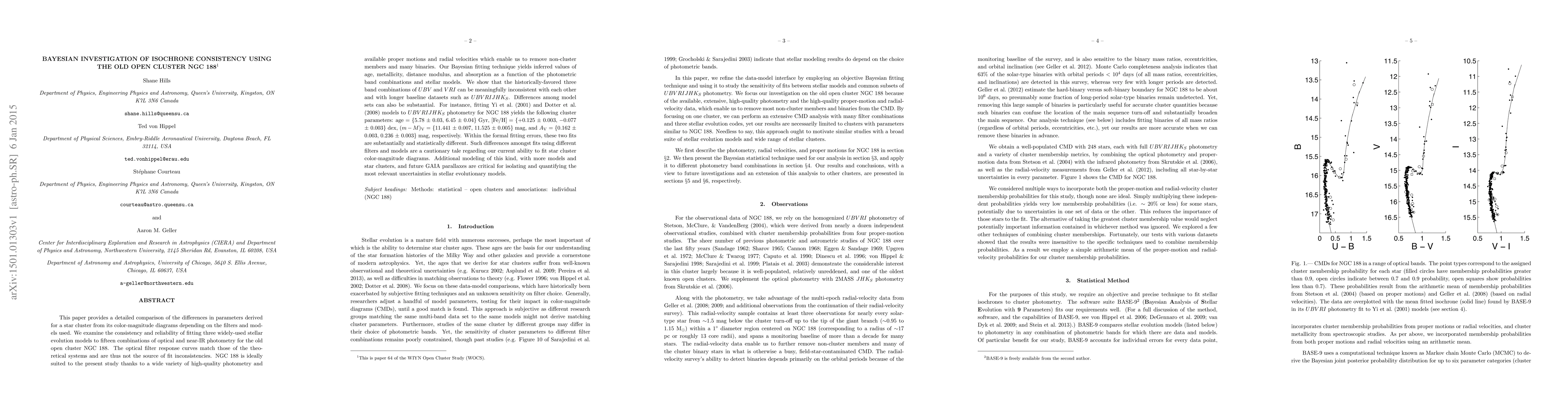 This paper investigates the consistency of stellar parameters derived from the color-magnitude diagrams of the old open cluster NGC 188 using different photometric filters and stellar evolution models. The study finds significant discrepancies among parameters inferred from various combinations of optical and near-IR photometry, highlighting the need for further modeling and improved stellar evolutionary models to better understand uncertainties.