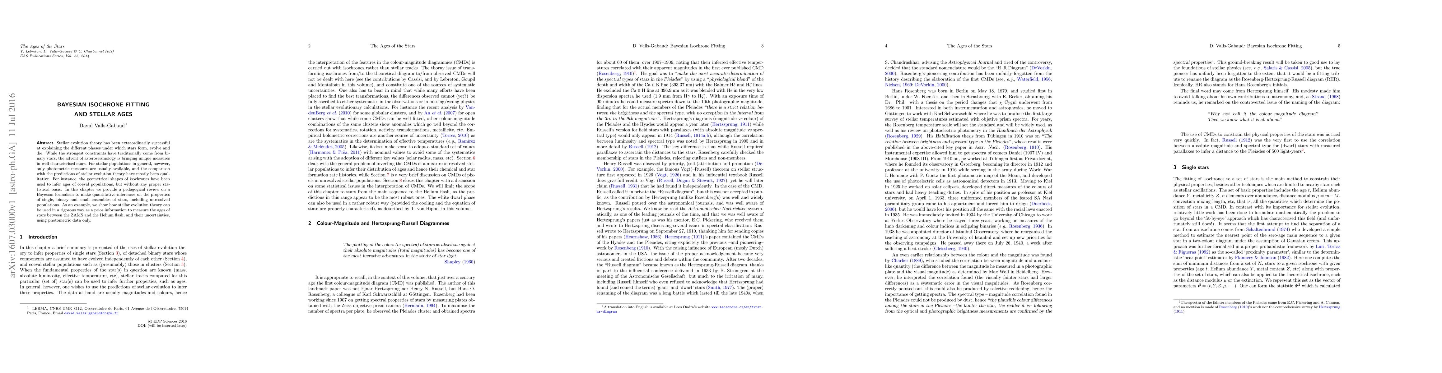 This paper reviews Bayesian isochrone fitting to quantitatively infer stellar ages from photometric data, using stellar evolution theory as a prior. It demonstrates the method's application to measure ages of stars between the Zero-Age Main Sequence and Helium flash, highlighting its statistical rigor and uncertainties.