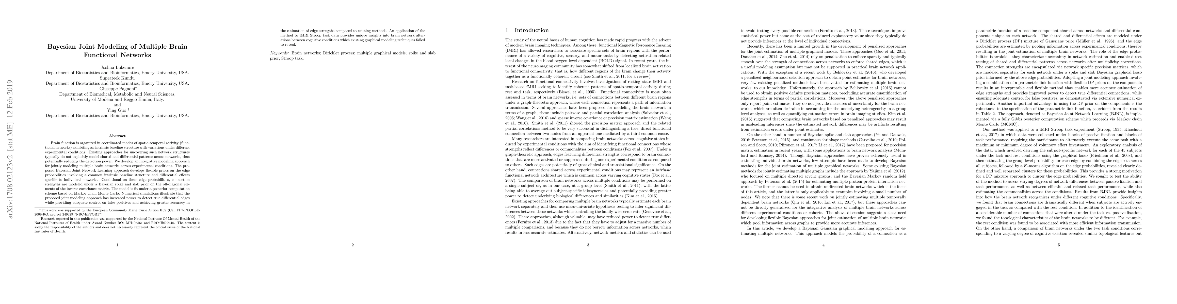 This paper proposes a Bayesian Joint Network Learning approach to model multiple brain functional networks jointly across experimental conditions, enhancing detection of shared and differential patterns. The method shows improved accuracy and reduced false positives compared to existing techniques, as demonstrated through simulations and an application to fMRI Stroop task data.