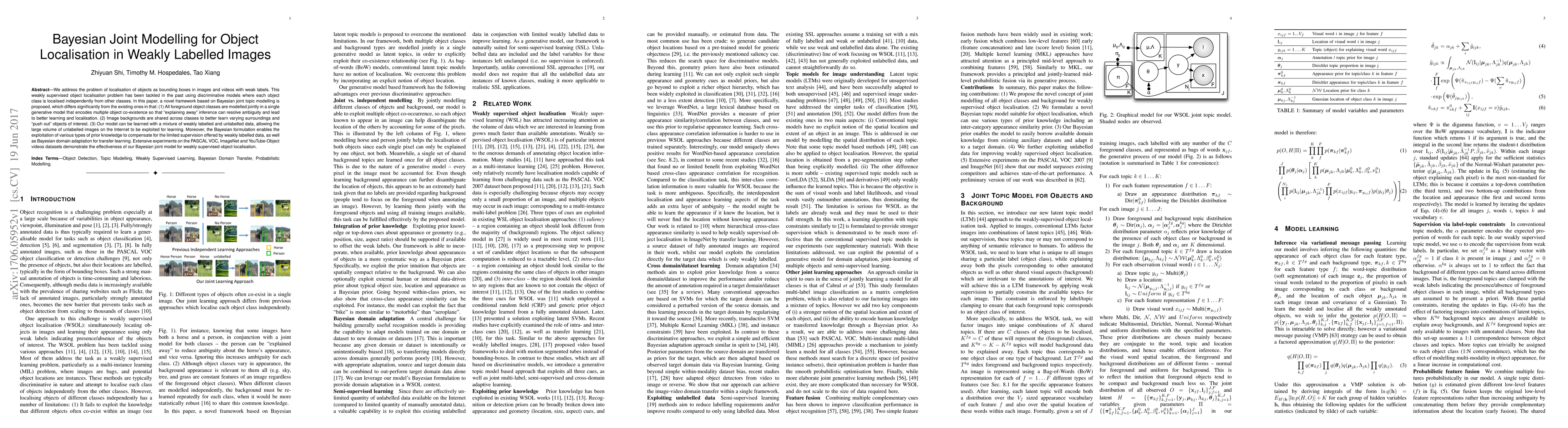 A new Bayesian joint model for object localization in weakly labelled images outperforms existing methods by modelling foreground objects jointly and sharing image backgrounds across classes.