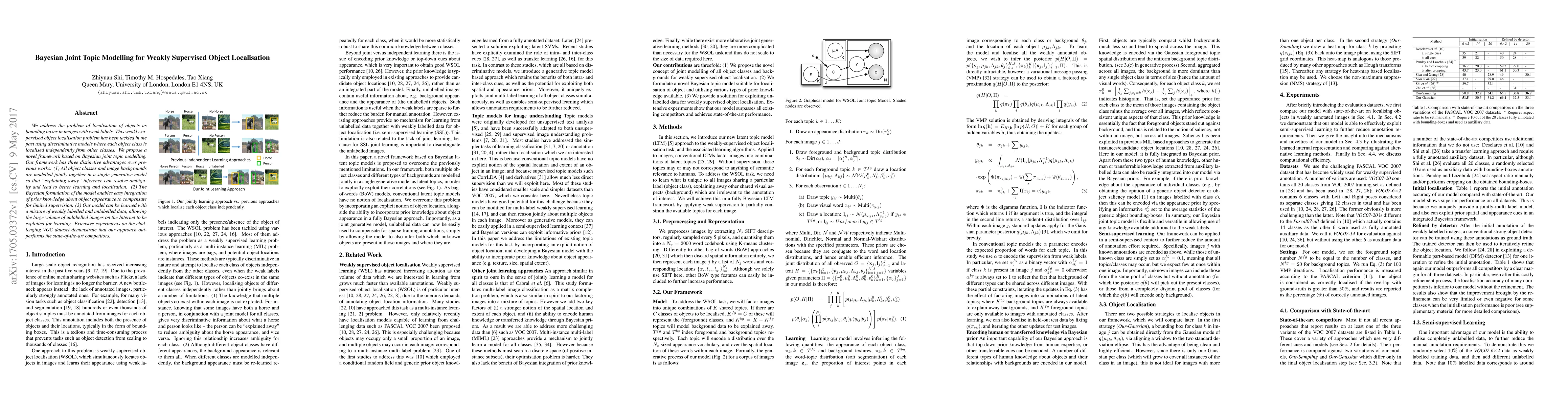 A new framework using Bayesian joint topic modelling improves object localisation accuracy in images with weak labels by jointly modelling multiple classes and backgrounds in a single generative model.