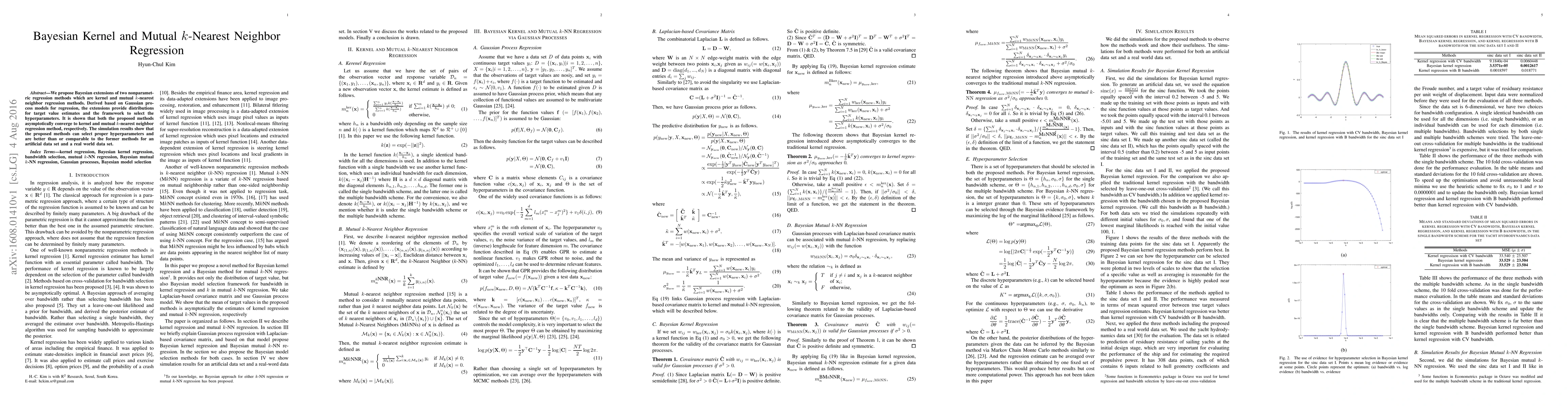 The paper presents Bayesian formulations for kernel and mutual $k$-nearest neighbor regression, providing valid covariance matrices and asymptotic convergence properties.