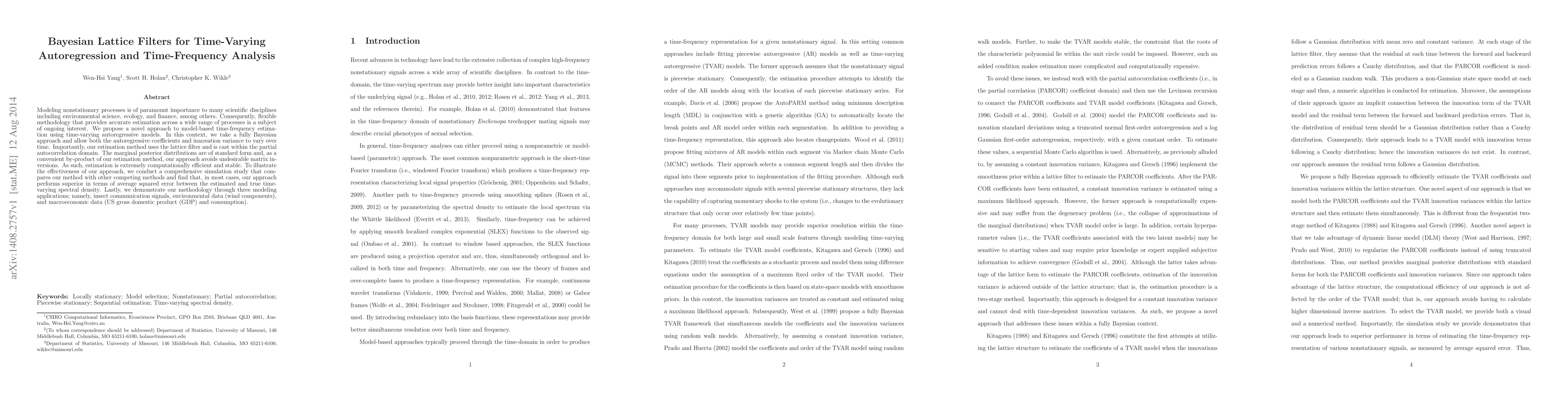 This paper proposes a Bayesian lattice filter for time-varying autoregressive models to accurately estimate nonstationary processes. It demonstrates superior performance in simulations and applications in environmental science, ecology, and finance.