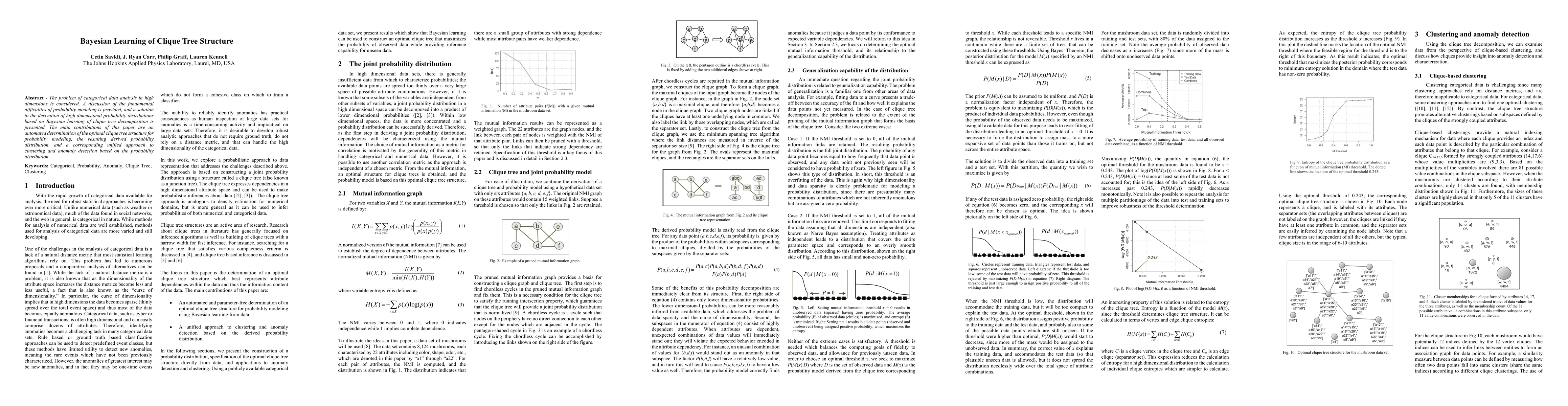 The problem of categorical data analysis in high dimensions is considered. A discussion of the fundamental difficulties of probability modeling is provided, and a solution to the derivation of high dimensional probability distributions based on Bayesian learning of clique tree decomposition is presented. The main contributions of this paper are an automated determination of the optimal clique tree structure for probability modeling, the resulting derived probability distribution, and a corresponding unified approach to clustering and anomaly detection based on the probability distribution.