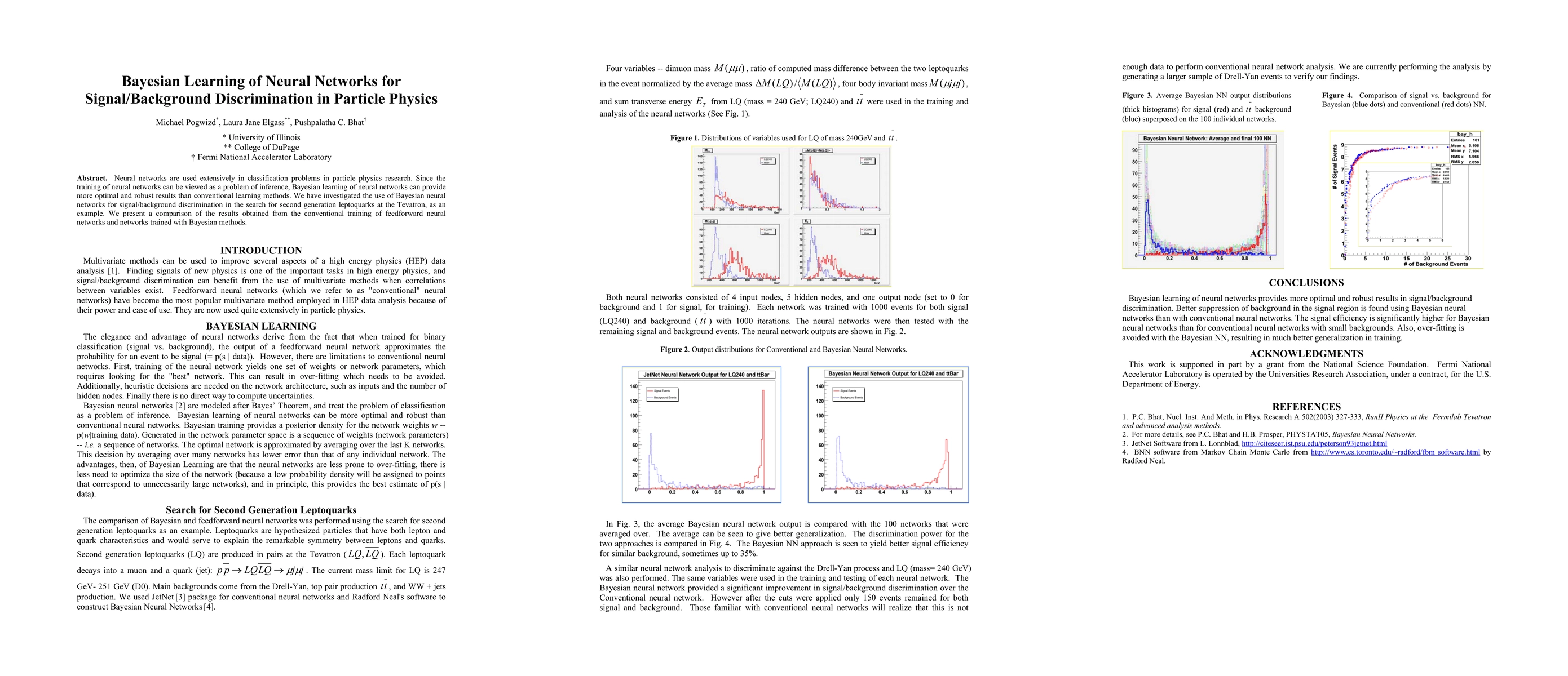 This paper explores Bayesian learning of neural networks for signal/background discrimination in particle physics, specifically in the search for second generation leptoquarks. It compares the performance of conventional neural network training methods with Bayesian approaches, demonstrating improved robustness and optimality in Bayesian methods.