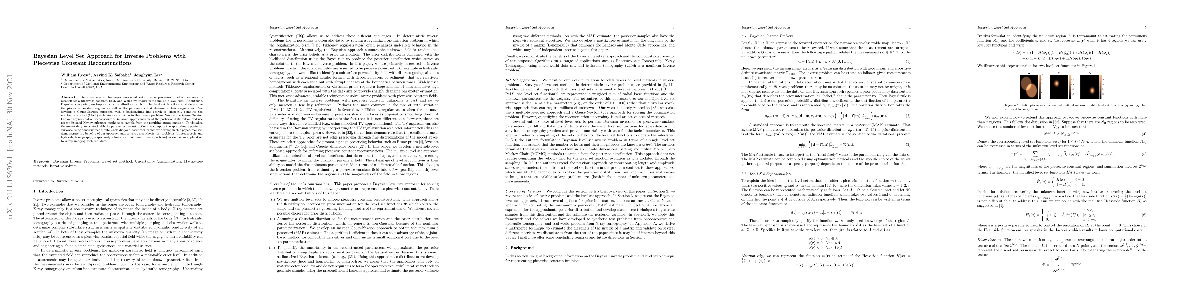 This paper proposes a Bayesian level set approach for solving inverse problems involving piecewise constant reconstructions, employing prior distributions and a Gauss-Newton method with backtracking. It utilizes a matrix-free Monte Carlo diagonal estimator to compute approximate posterior variances and demonstrates the method on synthetic and real-world X-ray imaging data.
