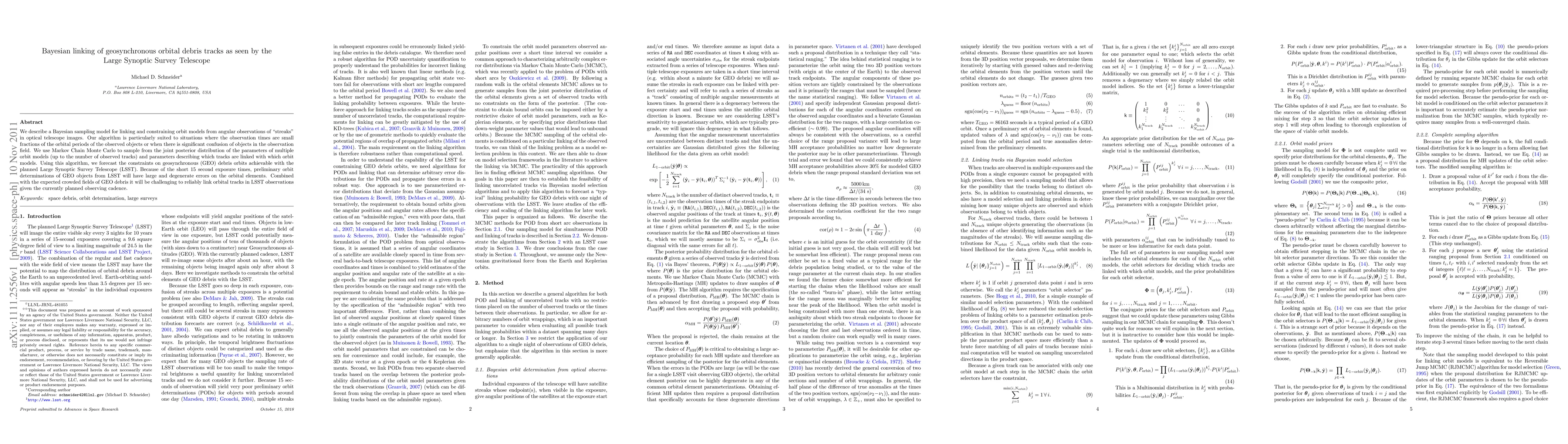 Researchers developed a Bayesian algorithm to link geosynchronous orbital debris tracks in optical telescope images, addressing challenges in the Large Synoptic Survey Telescope's (LSST) observations.