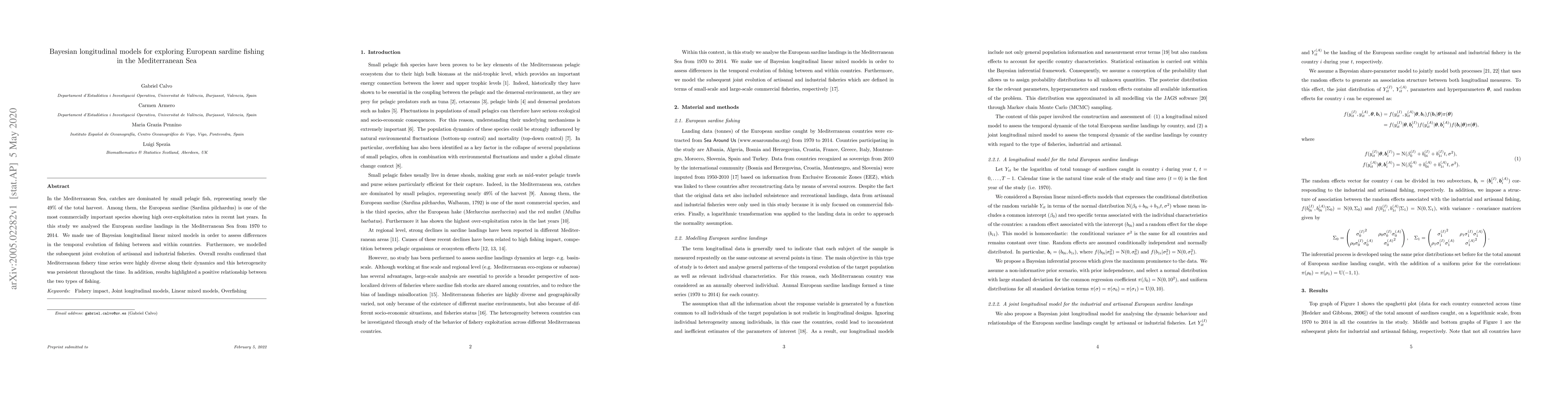 This study employs Bayesian longitudinal models to analyze European sardine landings in the Mediterranean Sea from 1970 to 2014, revealing diverse temporal fishing dynamics and a persistent heterogeneity. The research also found a positive relationship between artisanal and industrial sardine fisheries.