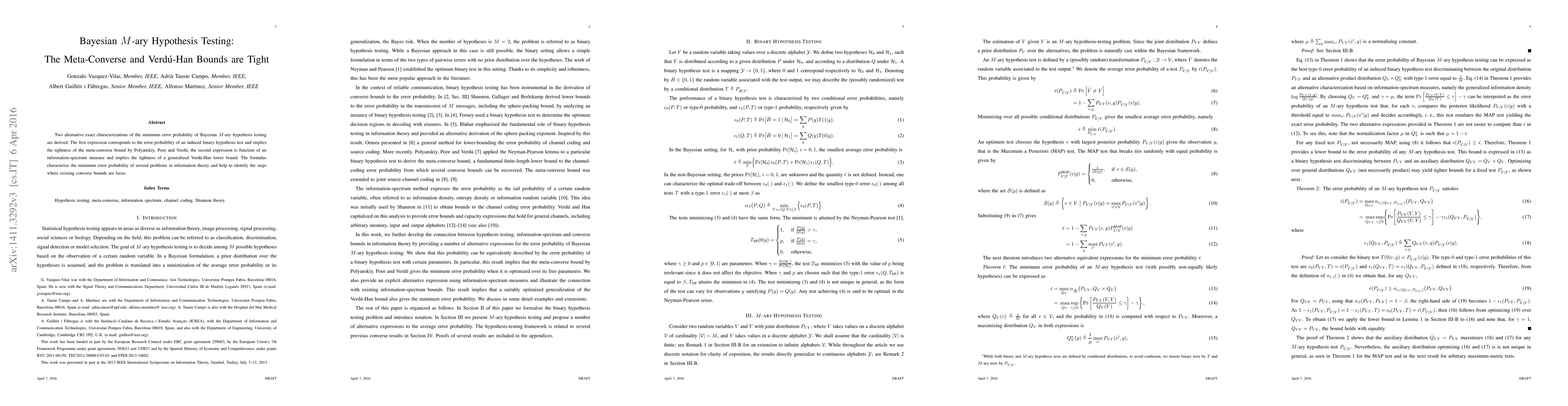 This paper derives two expressions for the minimum error probability in Bayesian M-ary hypothesis testing, showing the tightness of the meta-converse and Verdú-Han bounds. The results provide insights into where existing converse bounds are loose and characterize minimum error probabilities in various information theory problems.