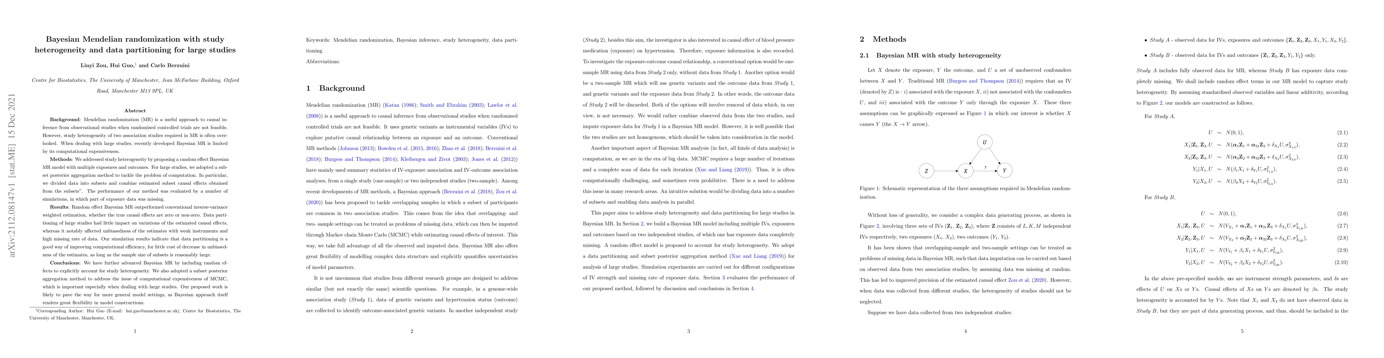 This study advances Bayesian Mendelian randomization by accounting for study heterogeneity through a random effect model and improving computational efficiency with data partitioning, leading to more accurate causal inference in large studies.