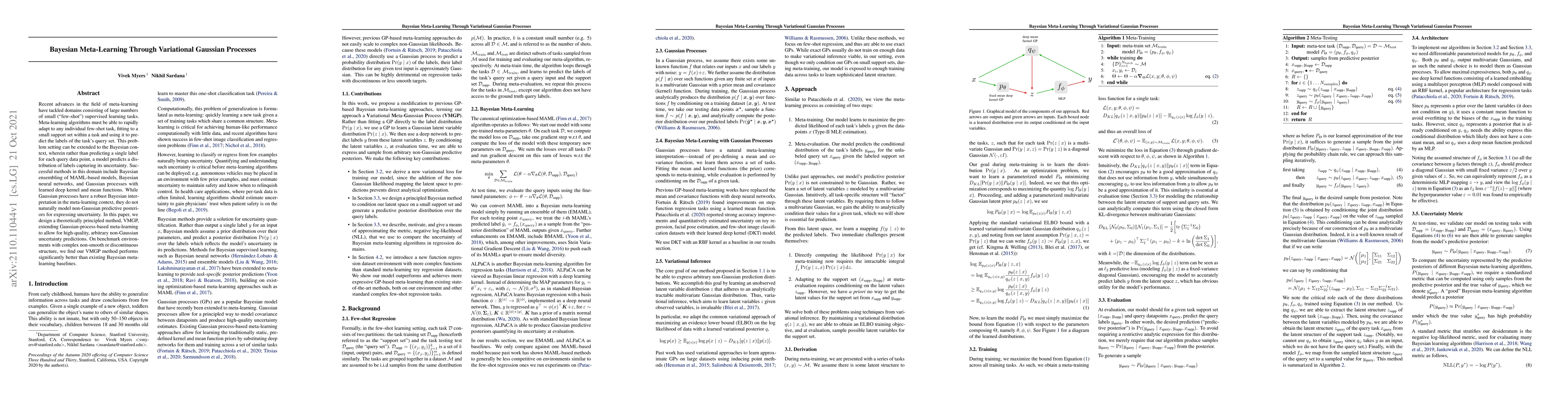 This paper proposes VMGP, a Bayesian meta-learning method that extends Gaussian processes to provide high-quality, non-Gaussian uncertainty predictions for few-shot learning tasks. The method outperforms existing Bayesian meta-learning baselines on complex, non-smooth environments.