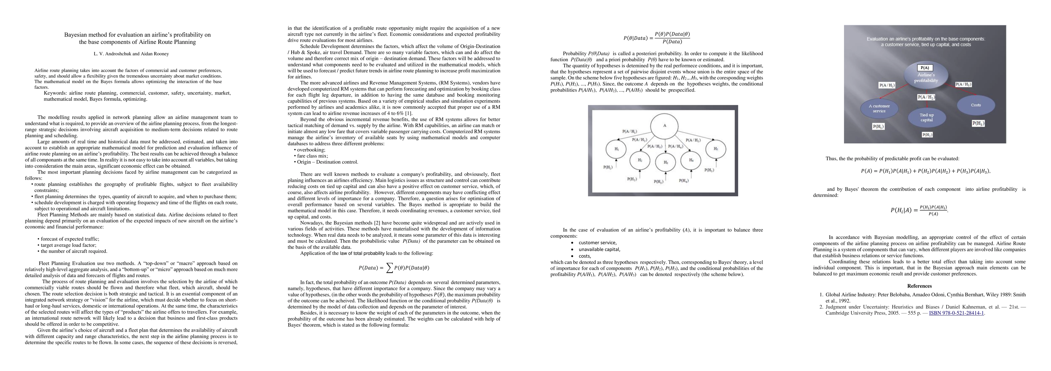 This research proposes a Bayesian method to assess airline profitability by optimizing key route planning factors like commercial preferences, customer demand, and market uncertainties, utilizing the Bayes formula for flexibility and efficiency.