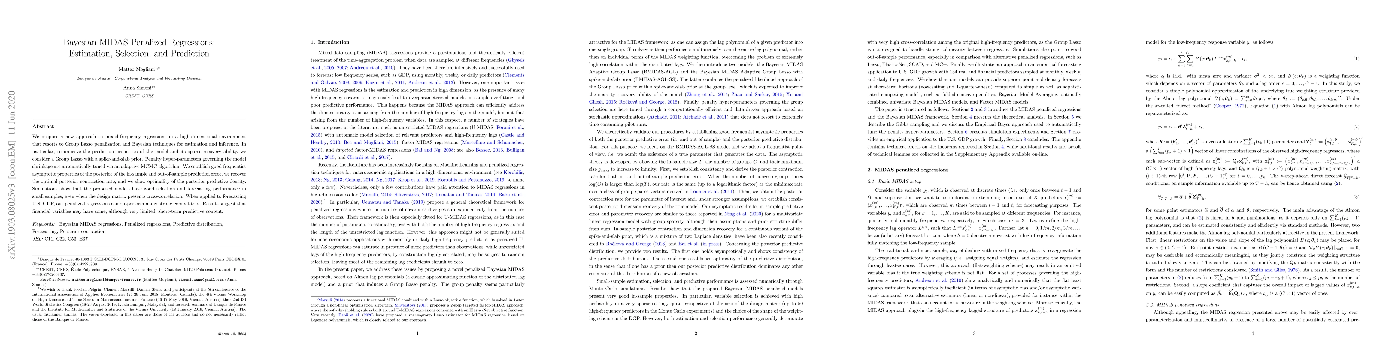 The paper proposes a new approach for mixed-frequency regressions in high-dimensional environments using Group Lasso penalization and Bayesian techniques. It introduces a Group Lasso with a spike-and-slab prior and an adaptive MCMC algorithm for tuning penalty hyper-parameters.