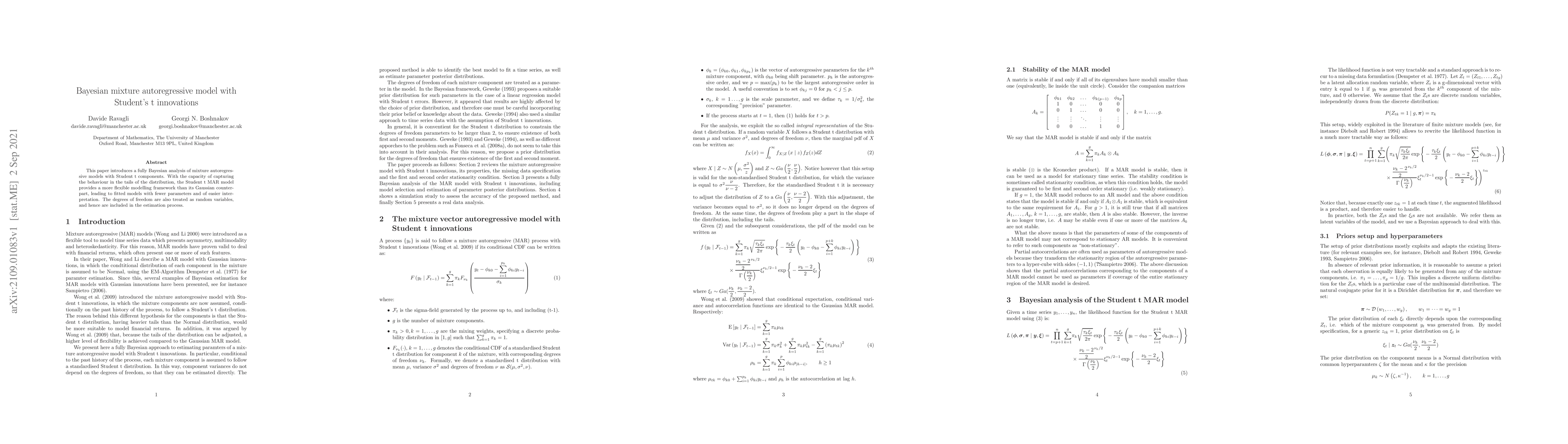 This paper proposes a Bayesian mixture autoregressive model using Student's t innovations, offering a more flexible framework than Gaussian models by capturing tail behavior. The degrees of freedom are treated as random variables, enhancing the model's interpretability and parameter efficiency.