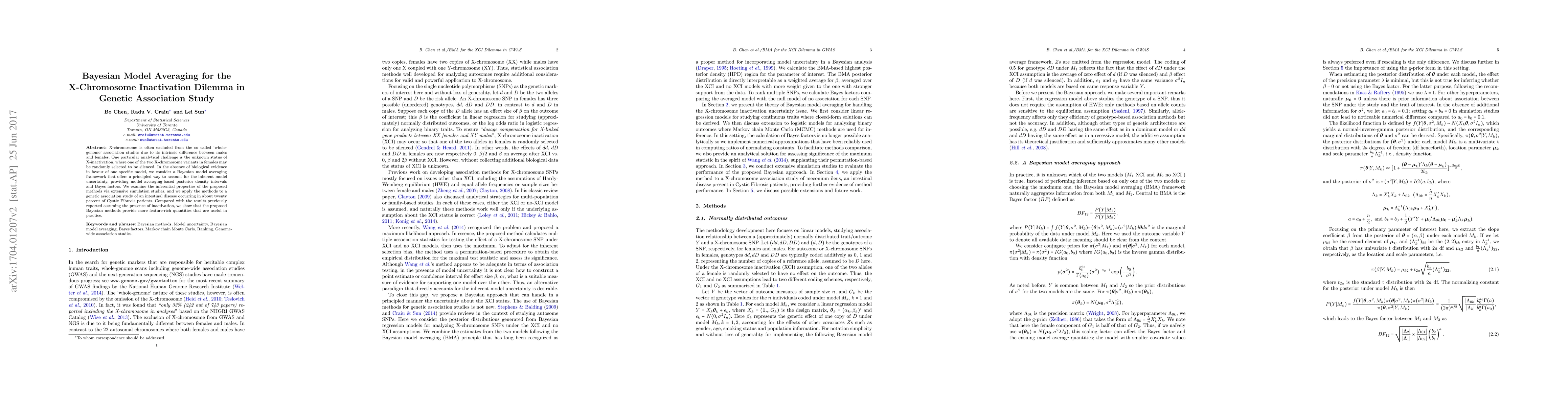 X-chromosome is often excluded from the so called `whole-genome' association studies due to its intrinsic difference between males and females. One particular analytical challenge is the unknown status of X-inactivation, where one of the two X-chromosome variants in females may be randomly selected to be silenced. In the absence of biological evidence in favour of one specific model, we consider a Bayesian model averaging framework that offers a principled way to account for the inherent model uncertainty, providing model averaging-based posterior density intervals and Bayes factors. We examine the inferential properties of the proposed methods via extensive simulation studies, and we apply the methods to a genetic association study of an intestinal disease occurring in about twenty percent of Cystic Fibrosis patients. Compared with the results previously reported assuming the presence of inactivation, we show that the proposed Bayesian methods provide more feature-rich quantities that are useful in practice.