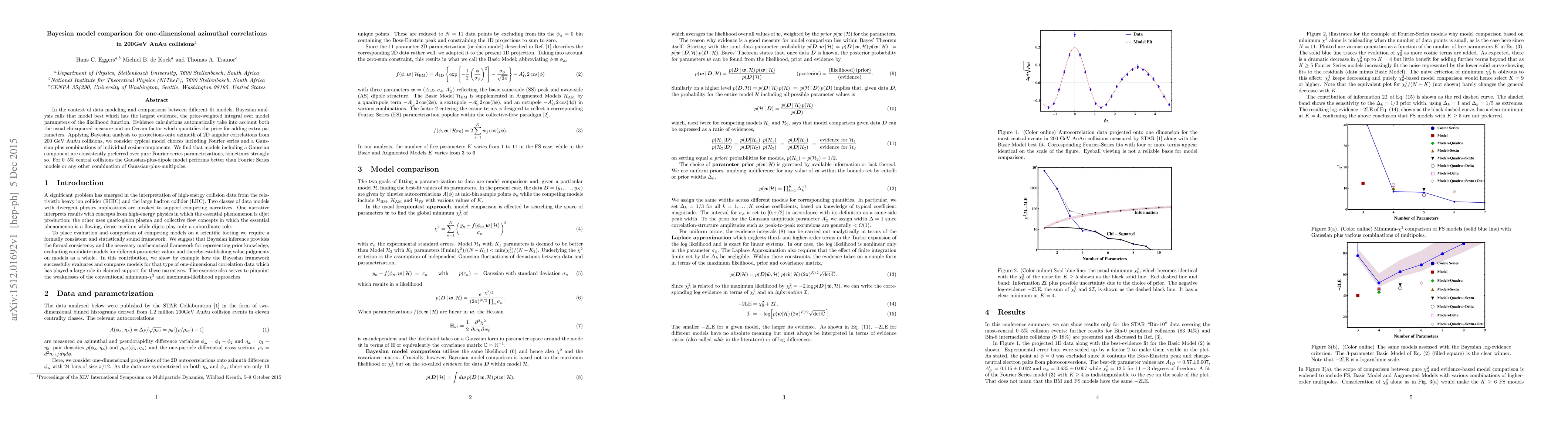 In the context of data modeling and comparisons between different fit models, Bayesian analysis calls that model best which has the largest evidence, the prior-weighted integral over model parameters of the likelihood function. Evidence calculations automatically take into account both the usual chi-squared measure and an Occam factor which quantifies the price for adding extra parameters. Applying Bayesian analysis to projections onto azimuth of 2D angular correlations from 200 GeV AuAu collisions, we consider typical model choices including Fourier series and a Gaussian plus combinations of individual cosine components. We find that models including a Gaussian component are consistently preferred over pure Fourier-series parametrizations, sometimes strongly so. For 0-5% central collisions the Gaussian-plus-dipole model performs better than Fourier Series models or any other combination of Gaussian-plus-multipoles.
