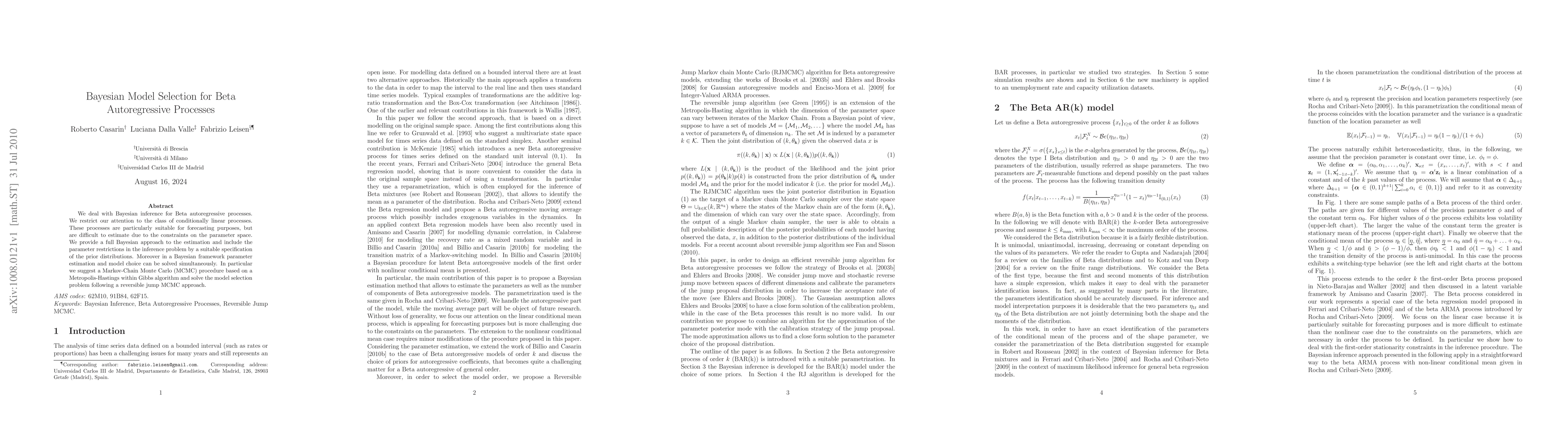 This paper presents a Bayesian approach for estimating Beta autoregressive processes, focusing on conditionally linear models. It employs a Markov-Chain Monte Carlo (MCMC) method, specifically a Metropolis-Hastings within Gibbs algorithm, to handle parameter restrictions and simultaneously solve the model selection problem using a reversible jump MCMC technique.