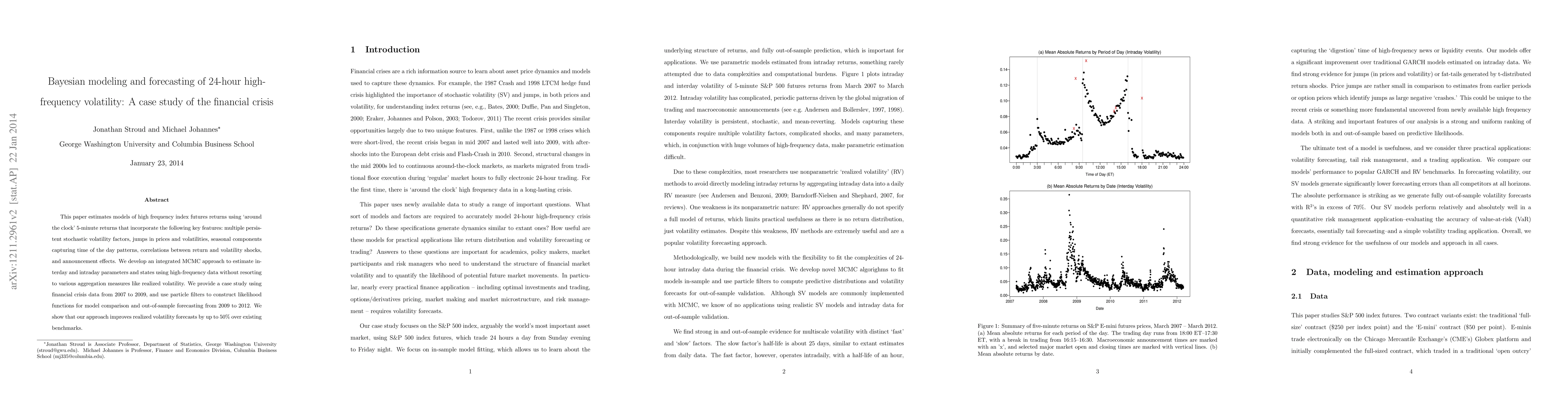 This paper estimates models of high frequency index futures returns using `around the clock' 5-minute returns that incorporate the following key features: multiple persistent stochastic volatility factors, jumps in prices and volatilities, seasonal components capturing time of the day patterns, correlations between return and volatility shocks, and announcement effects. We develop an integrated MCMC approach to estimate interday and intraday parameters and states using high-frequency data without resorting to various aggregation measures like realized volatility. We provide a case study using financial crisis data from 2007 to 2009, and use particle filters to construct likelihood functions for model comparison and out-of-sample forecasting from 2009 to 2012. We show that our approach improves realized volatility forecasts by up to 50% over existing benchmarks.