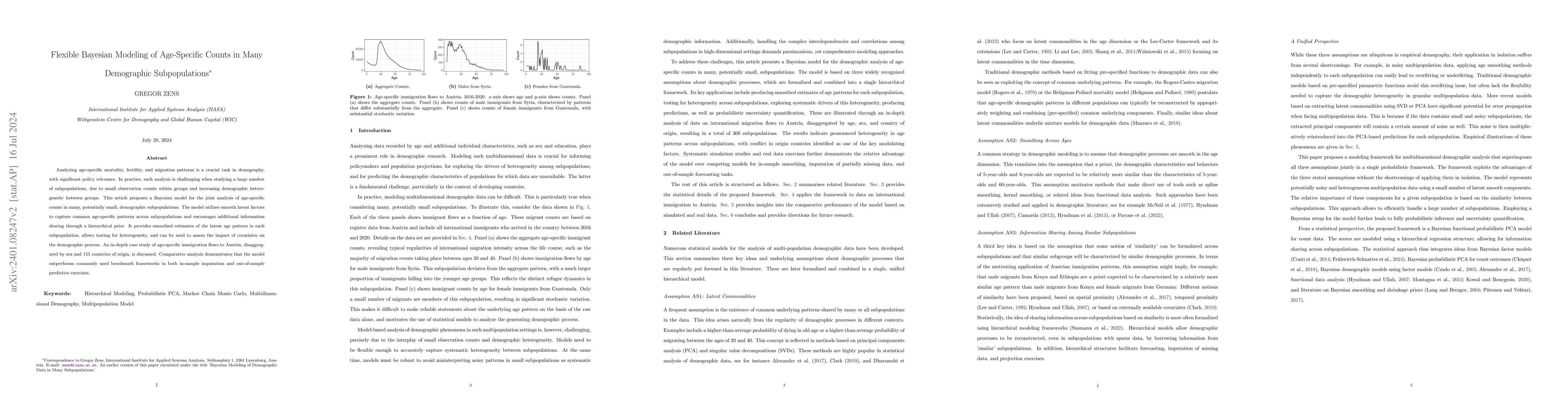 This paper proposes a Bayesian model for analyzing demographic data across many subpopulations, addressing challenges like small sample sizes and heterogeneity. The model effectively estimates demographic processes, tests for heterogeneity, and assesses covariate impacts, illustrated through an analysis of immigration flows to Austria. Comparative results show superior performance over traditional methods.