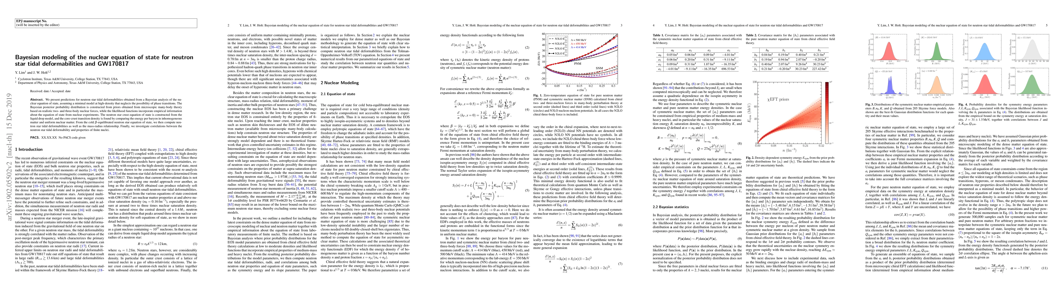 This paper uses Bayesian modeling to predict neutron star tidal deformabilities based on a nuclear equation of state derived from microscopic many-body theory and nuclear experiments. The study correlates neutron star tidal deformabilities with properties of finite nuclei, informed by the mass-radius relationship.