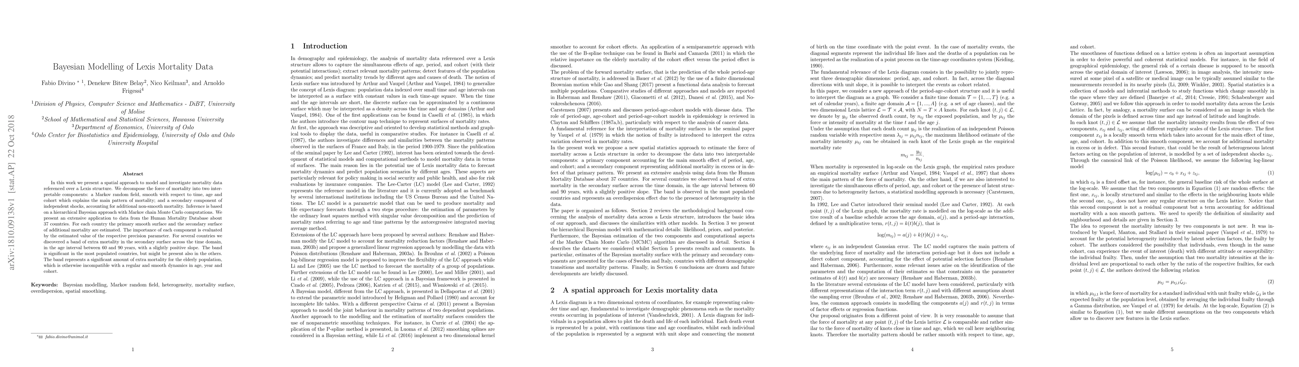 In this work we present a spatial approach to model and investigate mortality data referenced over a Lexis structure. We decompose the force of mortality into two interpretable components: a Markov random field, smooth with respect to time, age and cohort which explains the main pattern of mortality; and a secondary component of independent shocks, accounting for additional non-smooth mortality. Inference is based on a hierarchical Bayesian approach with Markov chain Monte Carlo computations. We present an extensive application to data from the Human Mortality Database about 37 countries. For each country the primary smooth surface and the secondary surface of additional mortality are estimated. The importance of each component is evaluated by the estimated value of the respective precision parameter. For several countries we discovered a band of extra mortality in the secondary surface across the time domain, in the age interval between 60 and 90 years, with a slightly positive slope. The band is significant in the most populated countries, but might be present also in the others. The band represents a significant amount of extra mortality for the elderly population, which is otherwise incompatible with a regular and smooth dynamics in age, year and cohort.