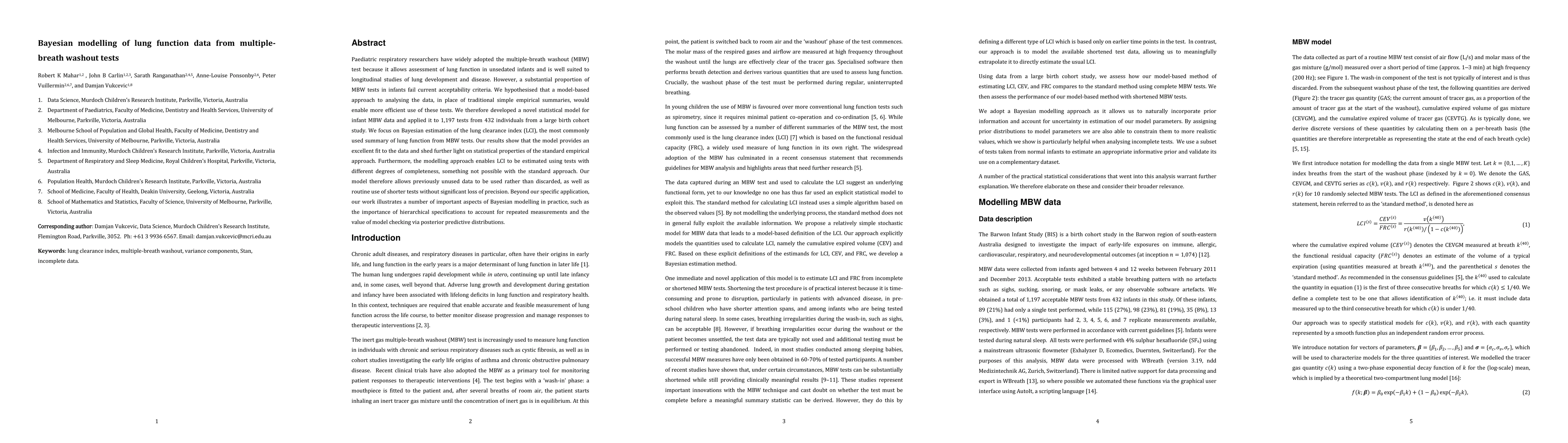 This paper develops a novel Bayesian statistical model for analyzing multiple-breath washout (MBW) test data in infants, enabling efficient use of incomplete tests and improving lung function assessment. The model provides an excellent fit and allows estimation of the lung clearance index (LCI) from previously unusable data, enhancing the utility of shorter tests without loss of precision.