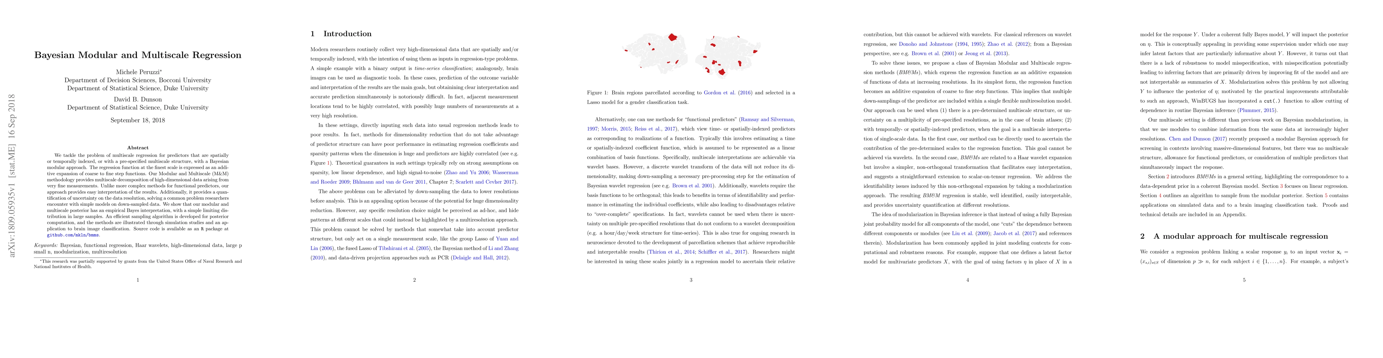 This paper proposes a Bayesian Modular and Multiscale (M&M) regression methodology for analyzing multiscale predictors, offering an additive decomposition of step functions for interpretability and uncertainty quantification. The approach is demonstrated through efficient sampling algorithms and applied to brain image classification, with source code available in an R package.