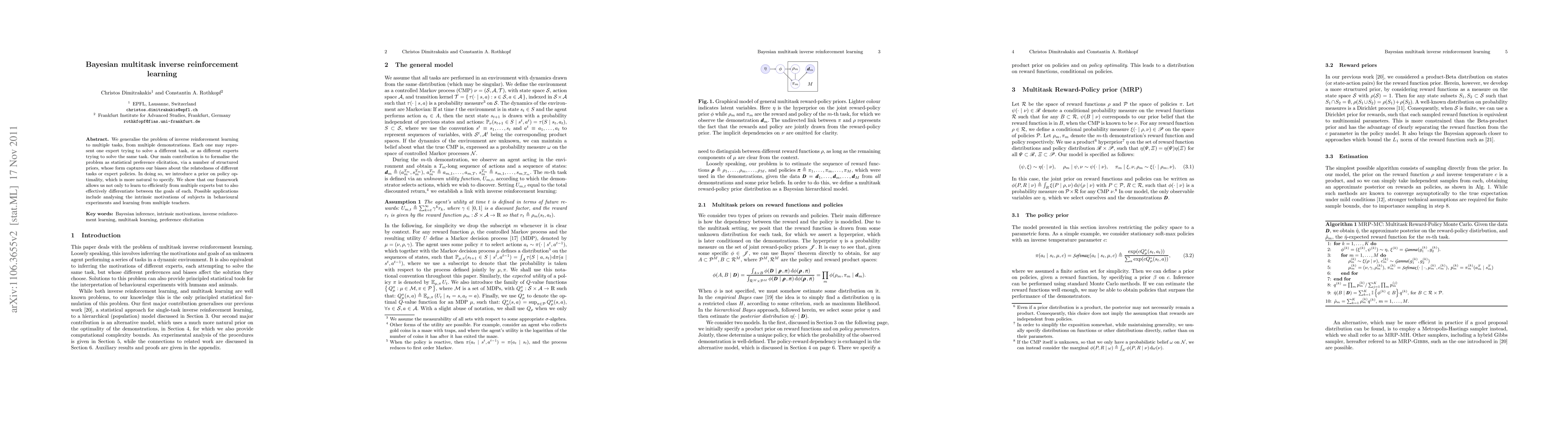 This paper generalises inverse reinforcement learning to multiple tasks, framing it as statistical preference elicitation with structured priors to capture task relatedness. The proposed framework enables efficient learning from multiple experts and differentiation of their goals, with applications in behavioural analysis and multi-teacher learning.