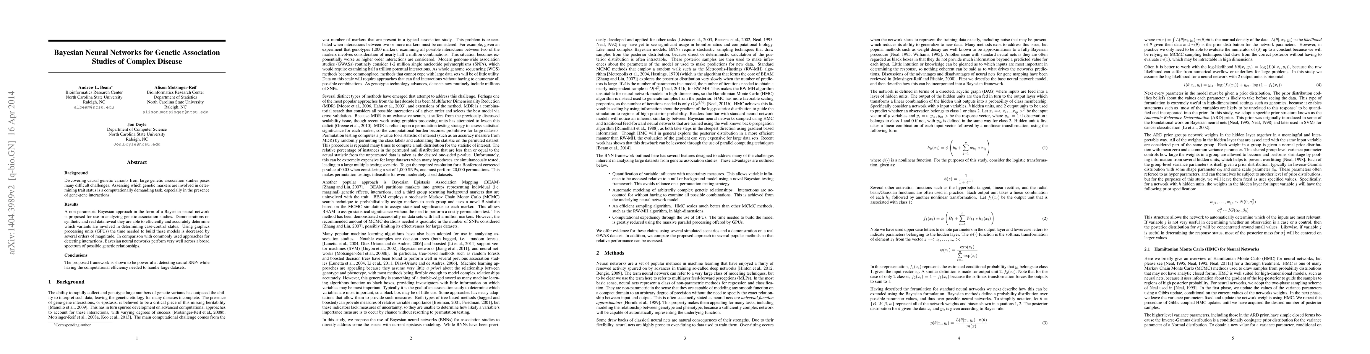 This paper proposes a Bayesian neural network approach for genetic association studies to identify causal genetic variants in complex diseases, demonstrating efficient and accurate determination of involved variants. The method, enhanced by GPU processing, outperforms traditional techniques in detecting genetic interactions and scales well with large datasets.
