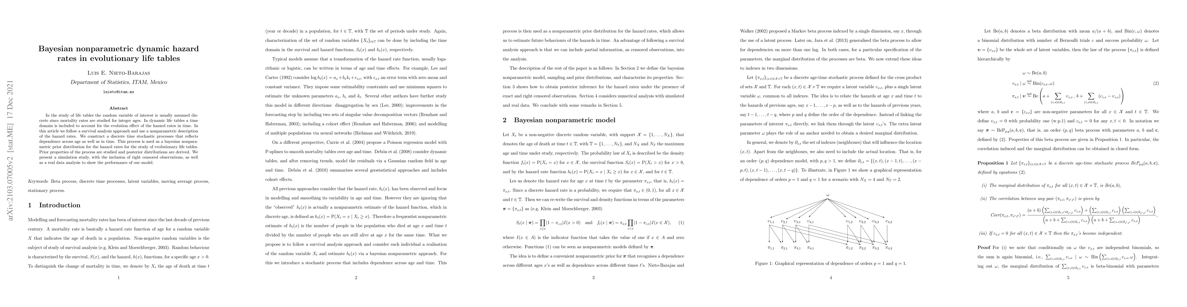 This paper develops a Bayesian nonparametric model for dynamic hazard rates in evolutionary life tables, employing a discrete time stochastic process to capture age-time dependencies. The model's performance is demonstrated through a simulation study and real data analysis, showcasing its effectiveness in handling right censored observations.