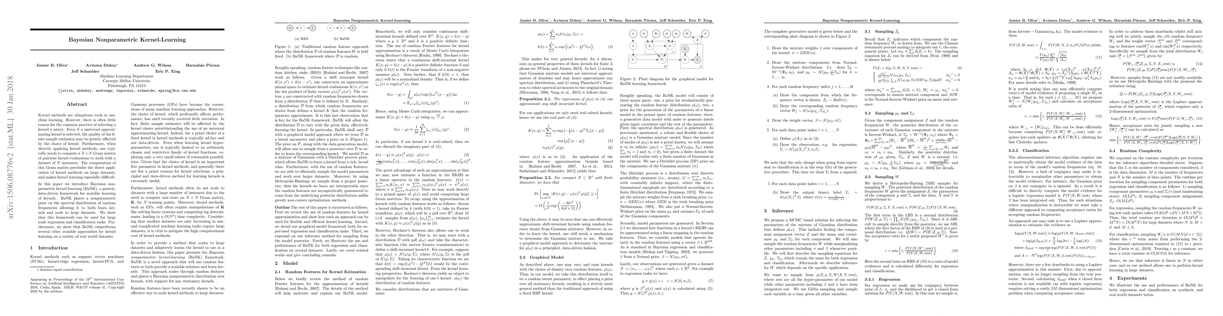 This paper introduces Bayesian nonparametric kernel-learning (BaNK), a scalable framework for data-driven kernel learning that avoids the limitations of pre-selected kernels and large Gram matrix computations. BaNK outperforms other scalable methods in regression and classification tasks on real-world datasets.