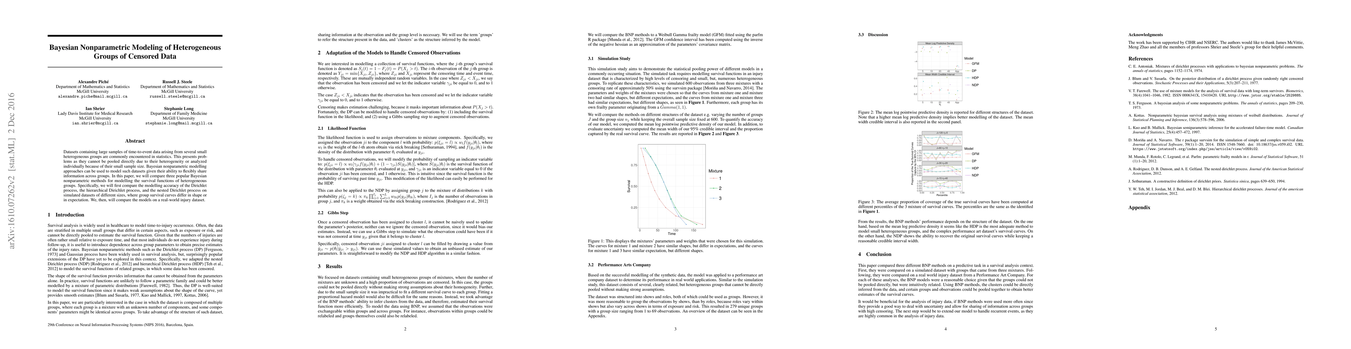 This paper compares three Bayesian nonparametric methods—Dirichlet process, hierarchical Dirichlet process, and nested Dirichlet process—to model survival functions in heterogeneous groups of censored time-to-event data. The study evaluates their modelling accuracy on both simulated and real-world injury datasets.