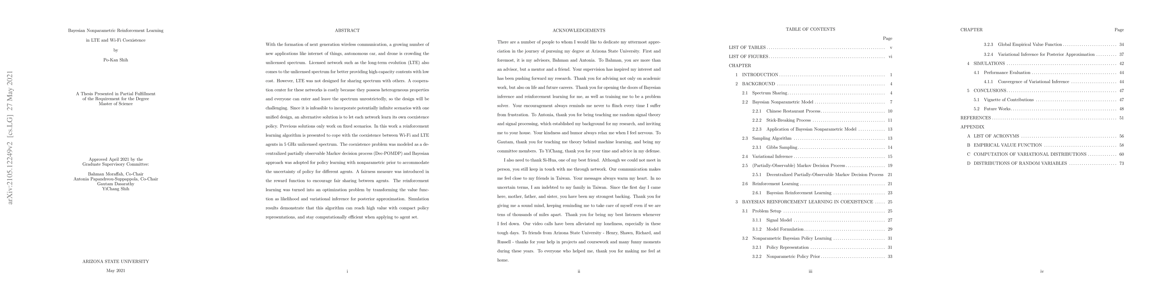 With the formation of next generation wireless communication, a growing number of new applications like internet of things, autonomous car, and drone is crowding the unlicensed spectrum. Licensed network such as the long-term evolution (LTE) also comes to the unlicensed spectrum for better providing high-capacity contents with low cost. However, LTE was not designed for sharing spectrum with others. A cooperation center for these networks is costly because they possess heterogeneous properties and everyone can enter and leave the spectrum unrestrictedly, so the design will be challenging. Since it is infeasible to incorporate potentially infinite scenarios with one unified design, an alternative solution is to let each network learn its own coexistence policy. Previous solutions only work on fixed scenarios. In this work a reinforcement learning algorithm is presented to cope with the coexistence between Wi-Fi and LTE agents in 5 GHz unlicensed spectrum. The coexistence problem was modeled as a decentralized partially observable Markov decision process (Dec-POMDP) and Bayesian approach was adopted for policy learning with nonparametric prior to accommodate the uncertainty of policy for different agents. A fairness measure was introduced in the reward function to encourage fair sharing between agents. The reinforcement learning was turned into an optimization problem by transforming the value function as likelihood and variational inference for posterior approximation. Simulation results demonstrate that this algorithm can reach high value with compact policy representations, and stay computationally efficient when applying to agent set.
