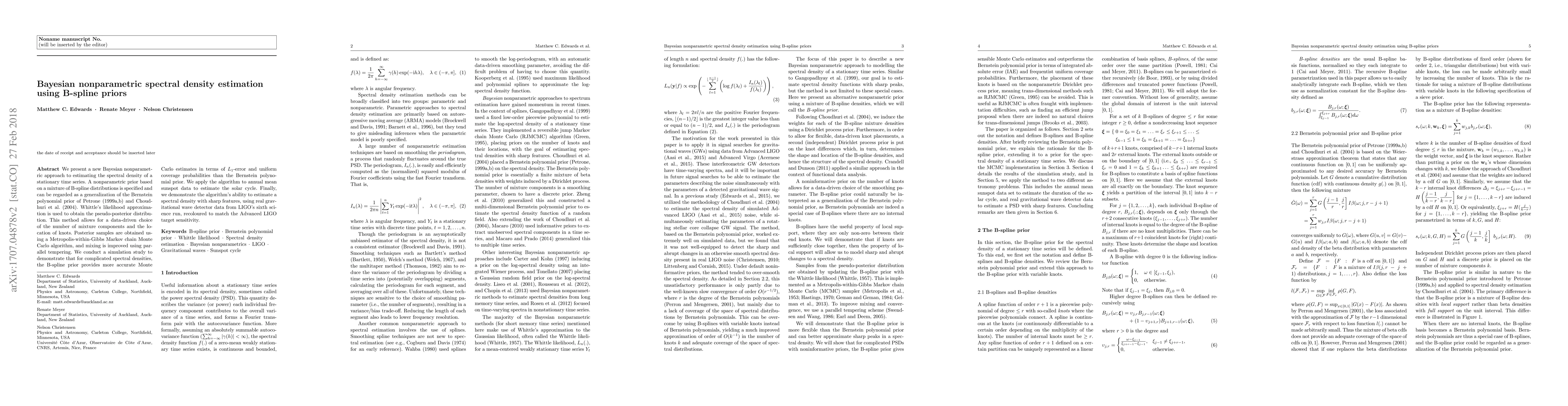 A new Bayesian method using B-spline priors is proposed for estimating spectral density in stationary time series, offering more accurate estimates than existing methods.