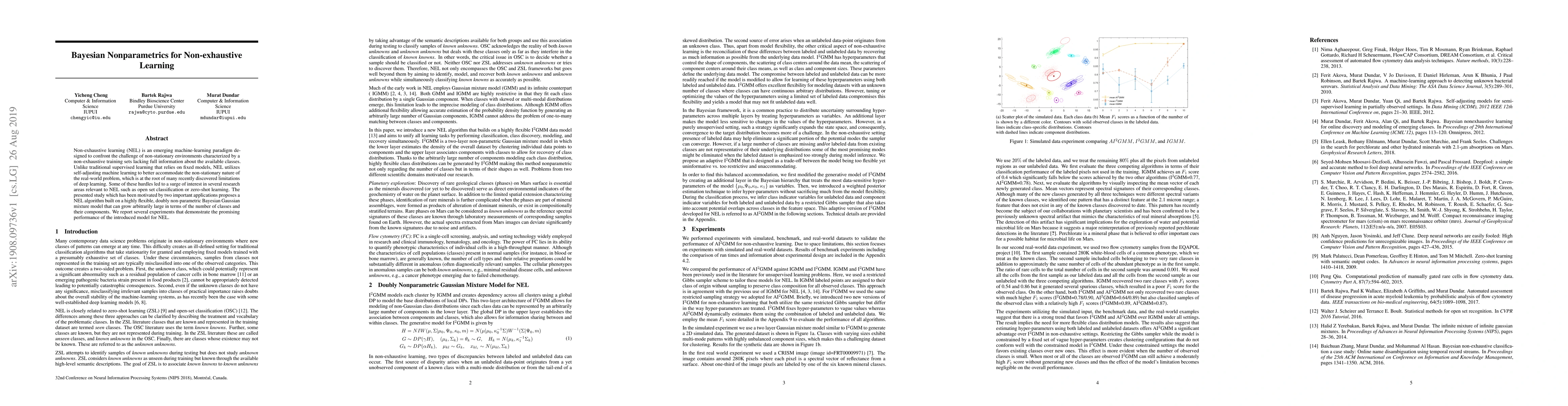 This paper proposes a Bayesian nonparametric Gaussian mixture model for non-exhaustive learning (NEL) to tackle the challenges of non-stationary environments with incomplete training data. The model demonstrates promising performance in experiments, highlighting its flexibility to accommodate an increasing number of classes.