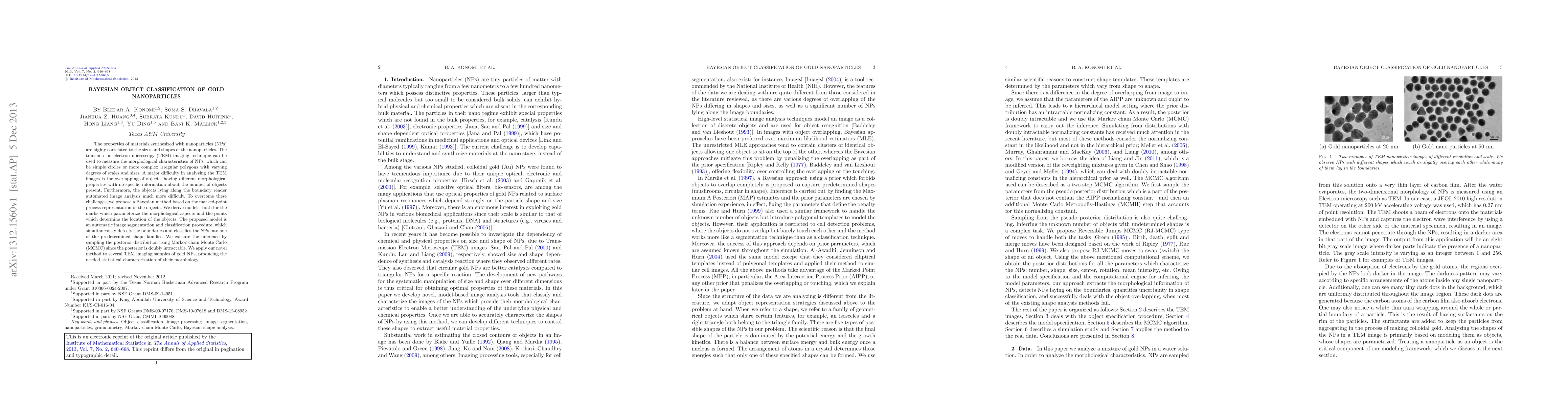 This research develops a Bayesian method to classify gold nanoparticles based on their shape and size, using transmission electron microscopy images, and produces statistical characterization of their morphology.