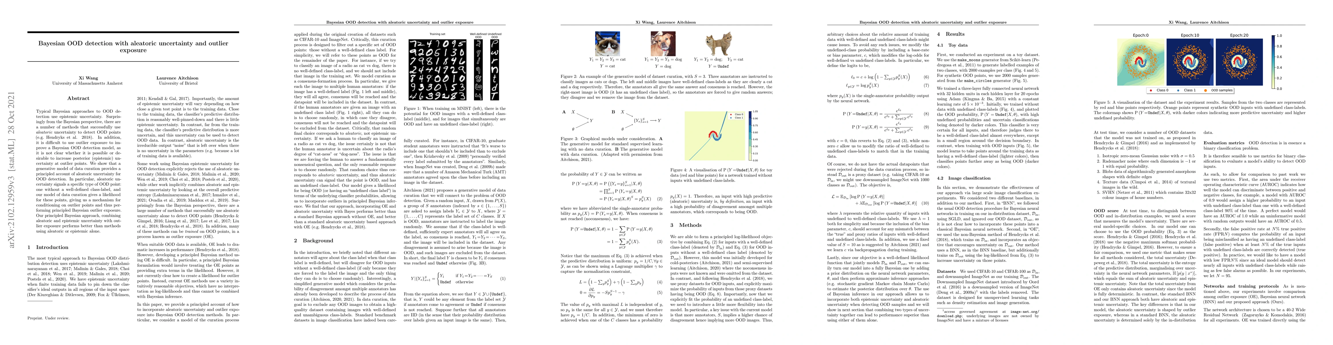 Typical Bayesian approaches to OOD detection use epistemic uncertainty. Surprisingly from the Bayesian perspective, there are a number of methods that successfully use aleatoric uncertainty to detect OOD points (e.g. Hendryks et al. 2018). In addition, it is difficult to use outlier exposure to improve a Bayesian OOD detection model, as it is not clear whether it is possible or desirable to increase posterior (epistemic) uncertainty at outlier points. We show that a generative model of data curation provides a principled account of aleatoric uncertainty for OOD detection. In particular, aleatoric uncertainty signals a specific type of OOD point: one without a well-defined class-label, and our model of data curation gives a likelihood for these points, giving us a mechanism for conditioning on outlier points and thus performing principled Bayesian outlier exposure. Our principled Bayesian approach, combining aleatoric and epistemic uncertainty with outlier exposure performs better than methods using aleatoric or epistemic alone.