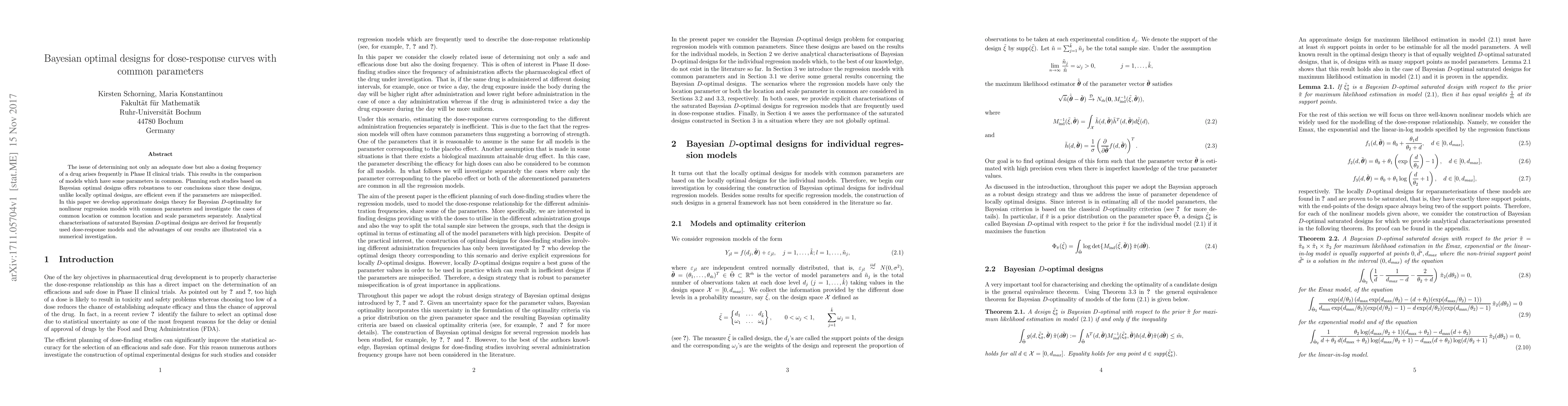 This paper develops Bayesian optimal design theory for dose-response curves in Phase II clinical trials, focusing on models with common parameters. It provides analytical characterizations for $D$-optimal designs, demonstrating robustness even with parameter misspecification, and illustrates the benefits through numerical examples.