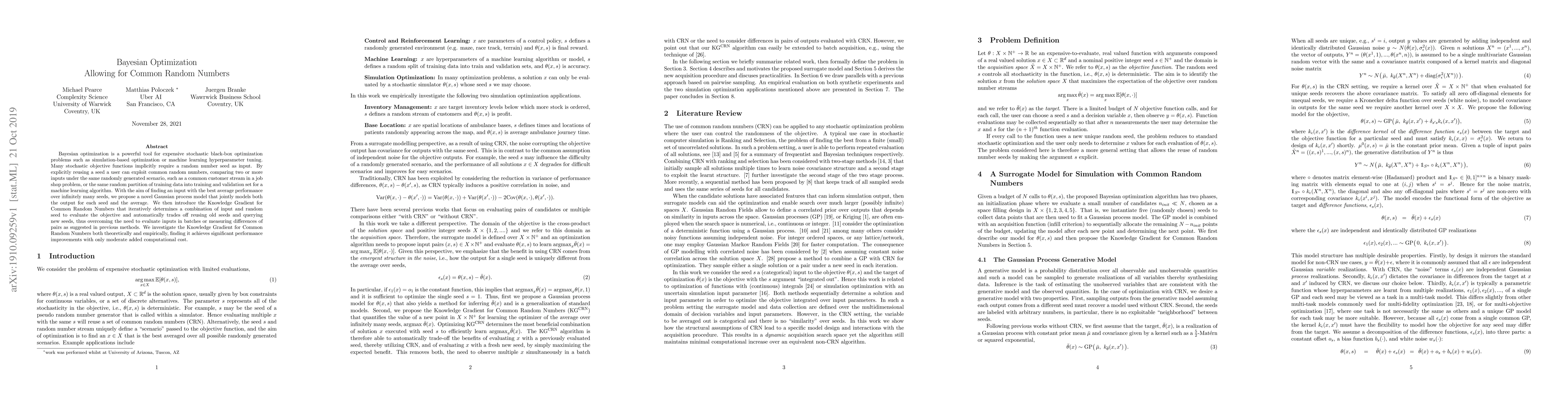 Researchers propose a new method to optimize complex problems with shared random numbers, achieving significant performance improvements without excessive computation. Their approach, called Knowledge Gradient for Common Random Numbers, allows for efficient evaluation of multiple inputs under the same seed.