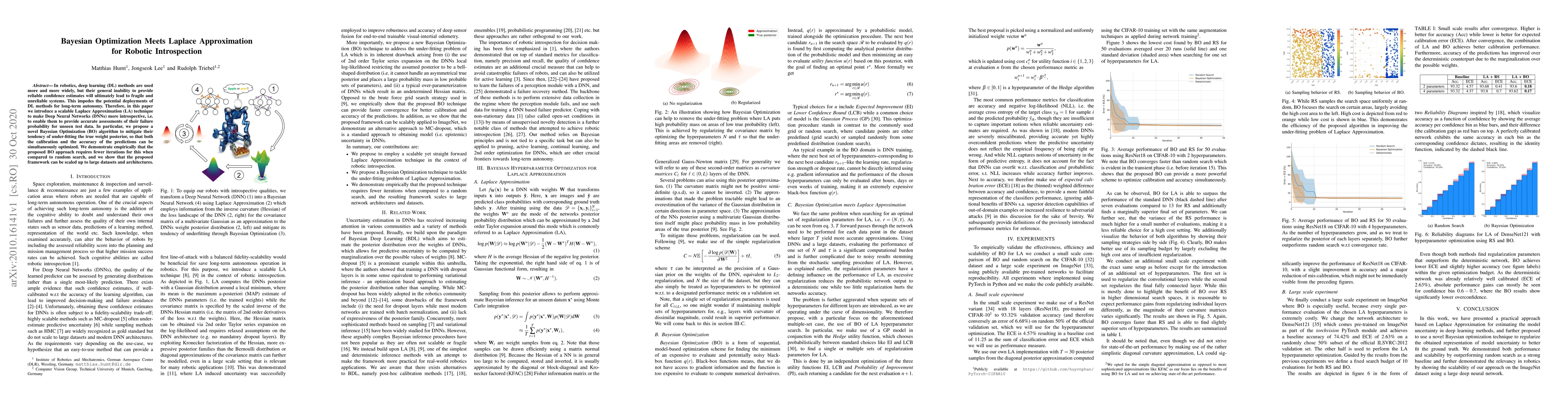 In robotics, deep learning (DL) methods are used more and more widely, but their general inability to provide reliable confidence estimates will ultimately lead to fragile and unreliable systems. This impedes the potential deployments of DL methods for long-term autonomy. Therefore, in this paper we introduce a scalable Laplace Approximation (LA) technique to make Deep Neural Networks (DNNs) more introspective, i.e. to enable them to provide accurate assessments of their failure probability for unseen test data. In particular, we propose a novel Bayesian Optimization (BO) algorithm to mitigate their tendency of under-fitting the true weight posterior, so that both the calibration and the accuracy of the predictions can be simultaneously optimized. We demonstrate empirically that the proposed BO approach requires fewer iterations for this when compared to random search, and we show that the proposed framework can be scaled up to large datasets and architectures.