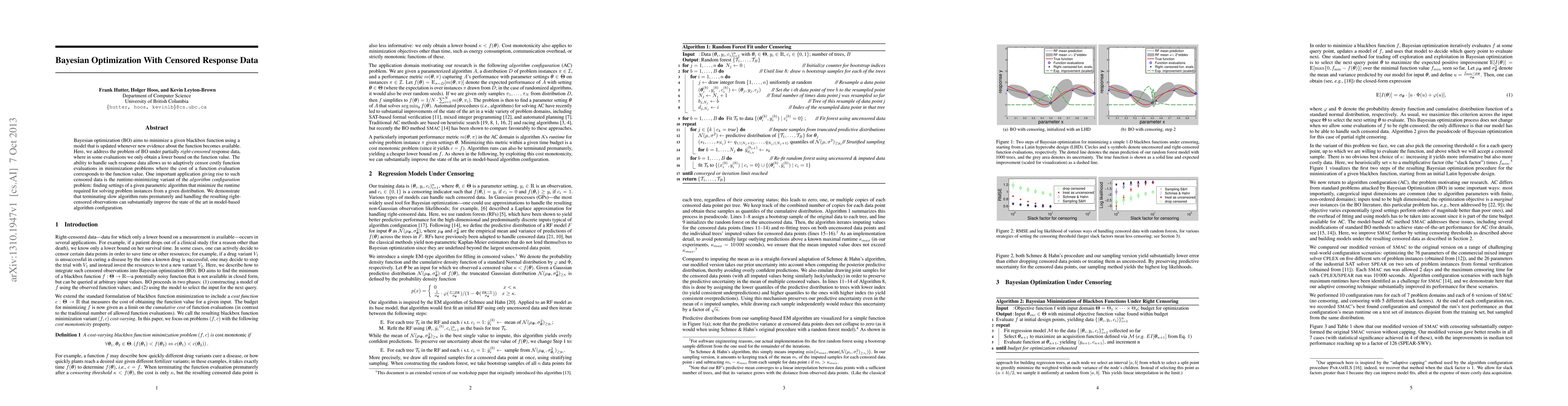 This paper proposes a Bayesian optimization method for minimizing blackbox functions under partially right-censored response data, allowing premature termination of costly evaluations. It demonstrates improved performance in runtime-minimizing algorithm configuration by adaptively censoring slow algorithm runs.