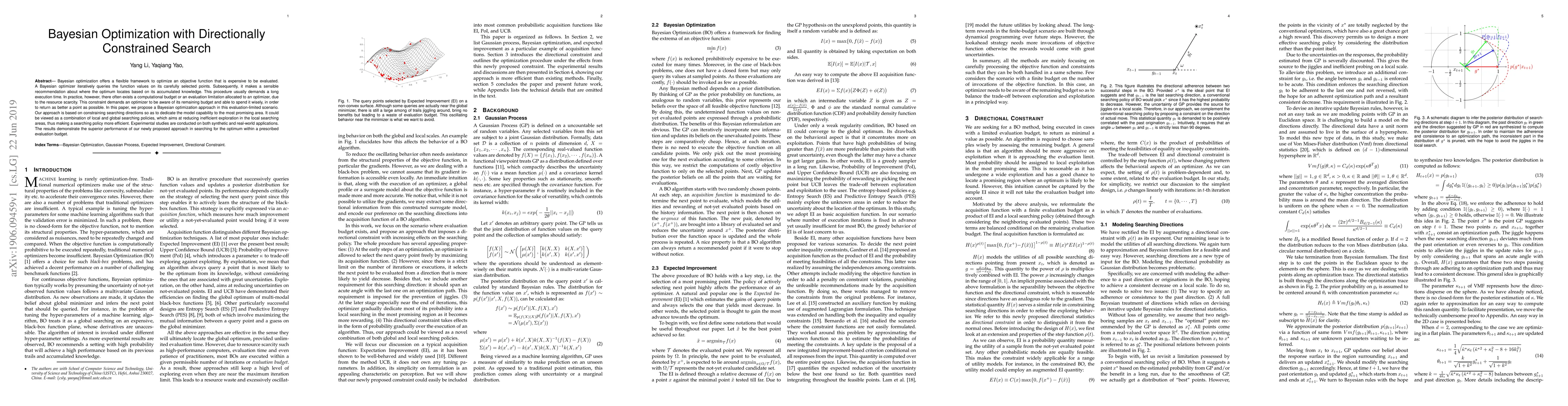 This paper proposes a Bayesian optimization approach that constrains search directions to efficiently allocate limited evaluations, demonstrating superior performance in finding the optimum within a specified budget.
