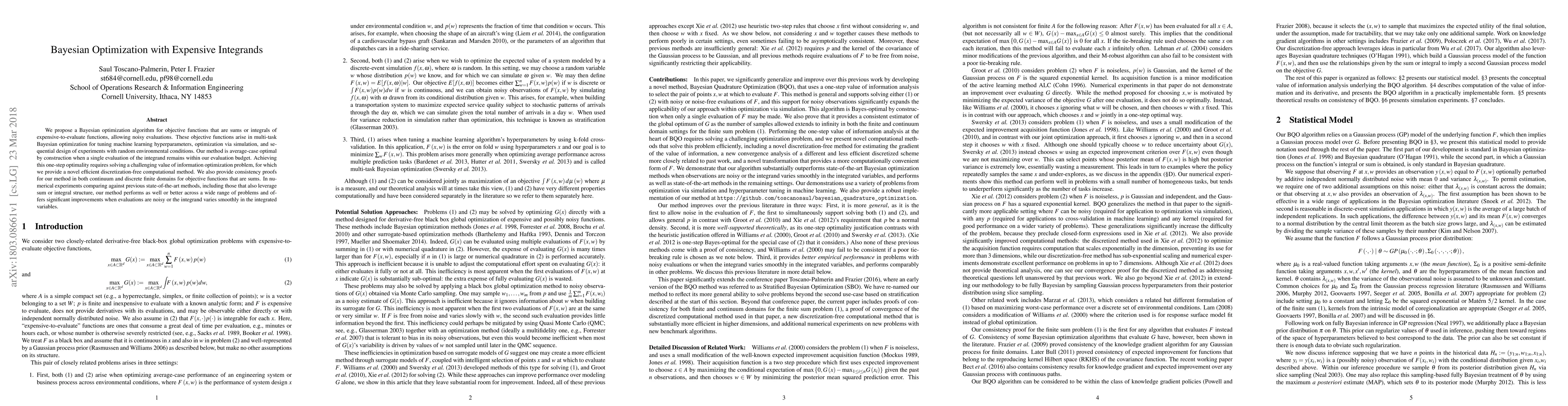 This paper introduces a Bayesian optimization algorithm for expensive-to-evaluate objective functions that are sums or integrals of such functions, addressing noisy evaluations. The method achieves average-case optimality and provides a novel computational approach for solving the value of information optimization problem.
