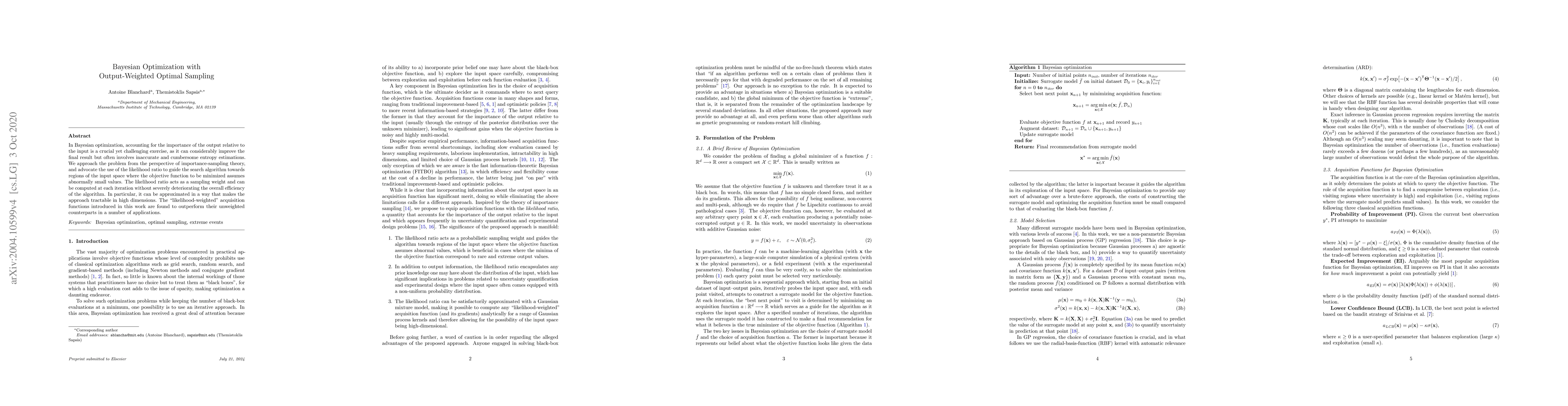 This research paper proposes a Bayesian optimization approach that uses likelihood ratios to guide the search algorithm towards regions with low output values, improving final results without requiring accurate entropy estimations. The method outperforms traditional unweighted acquisition functions in several applications.