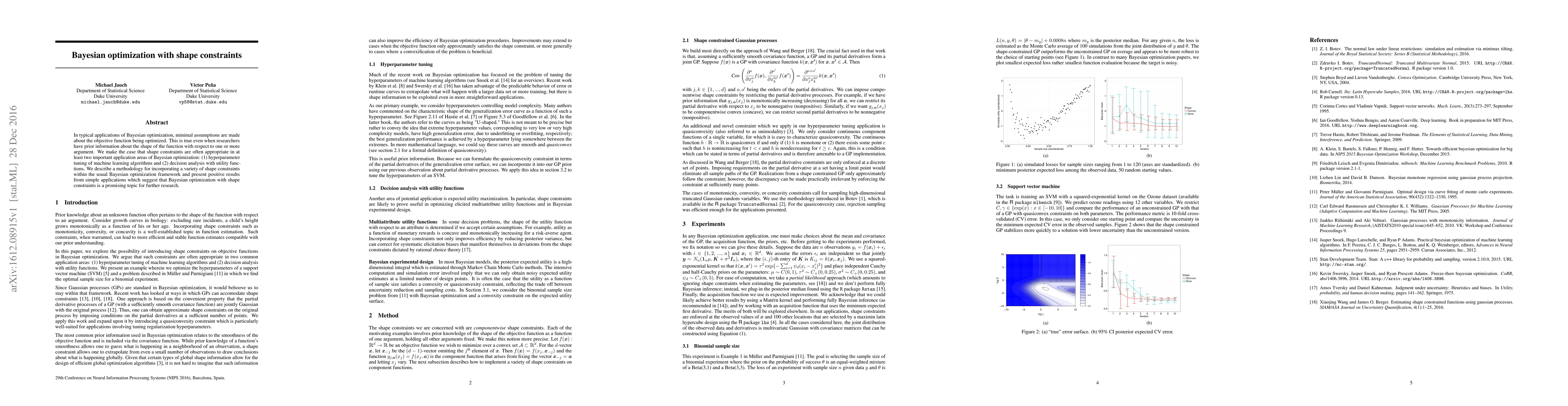 This paper proposes incorporating shape constraints into Bayesian optimization to improve performance in hyperparameter tuning and decision analysis. The authors present a methodology for integrating these constraints and demonstrate its potential through preliminary applications.